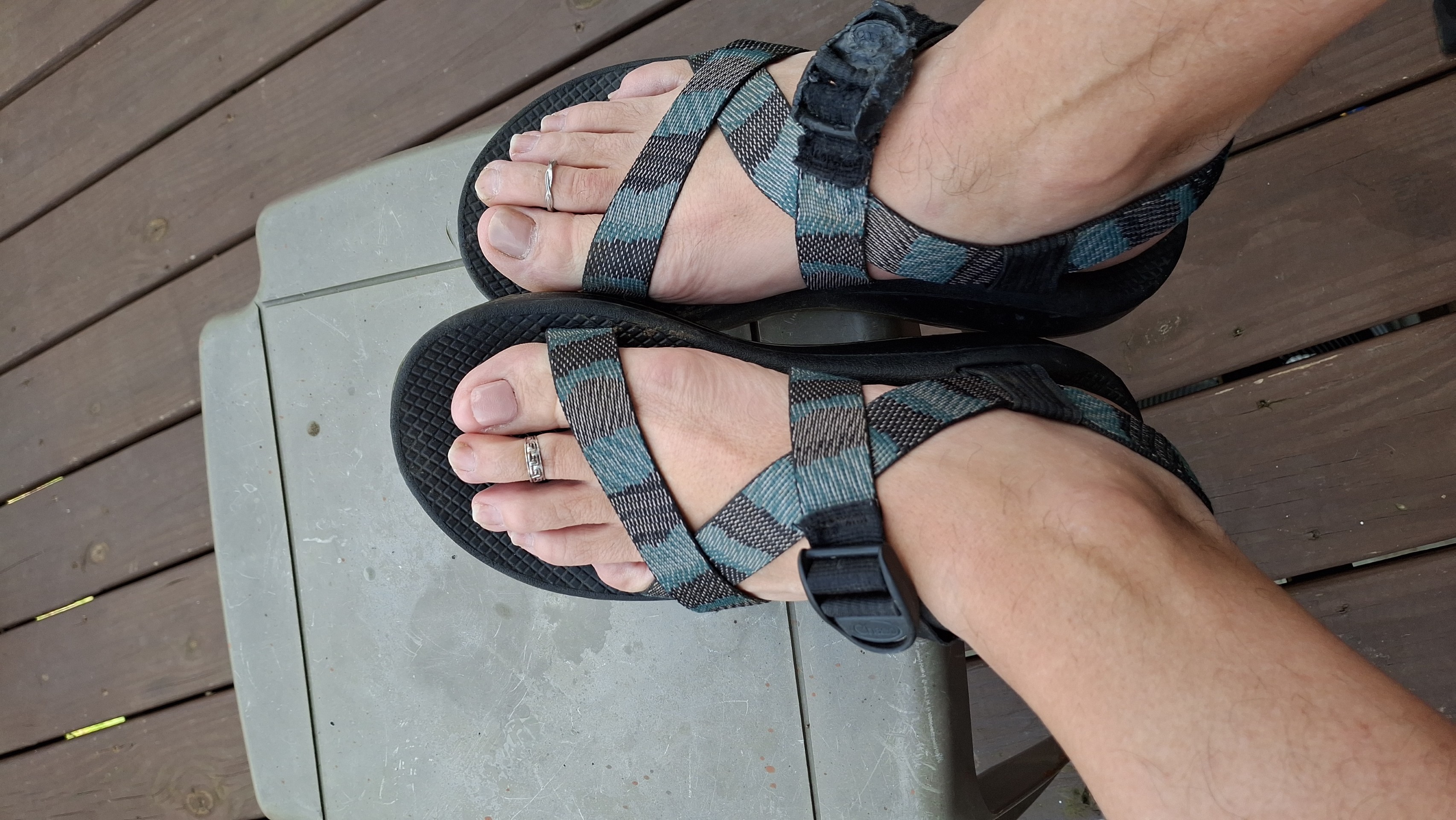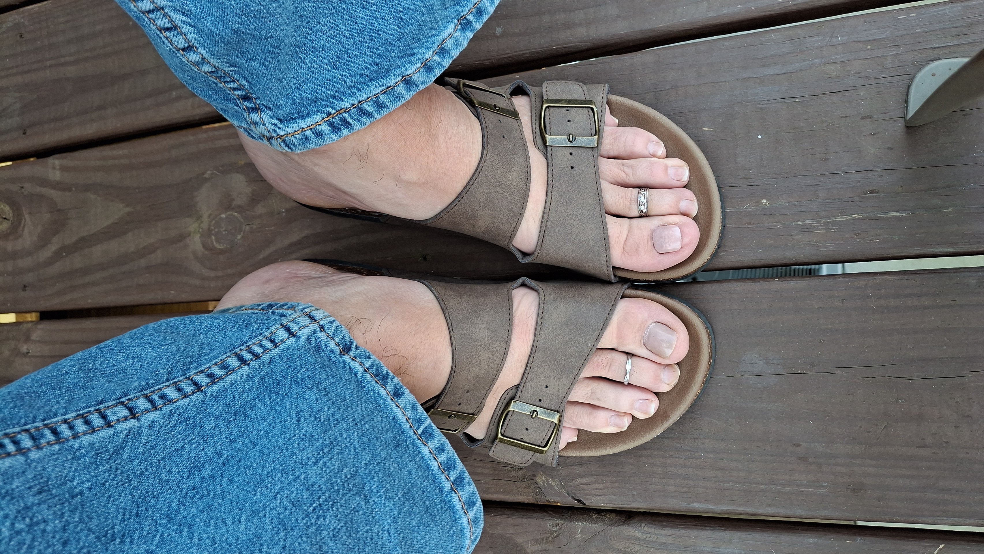 He says, "Always keen to get feedback from guys into feet and sandals."