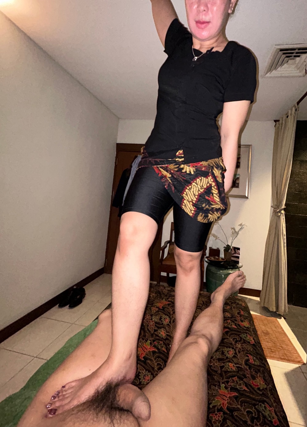 so relaxed with this great foot massage she was getting. She had mentioned how wonderful it felt on