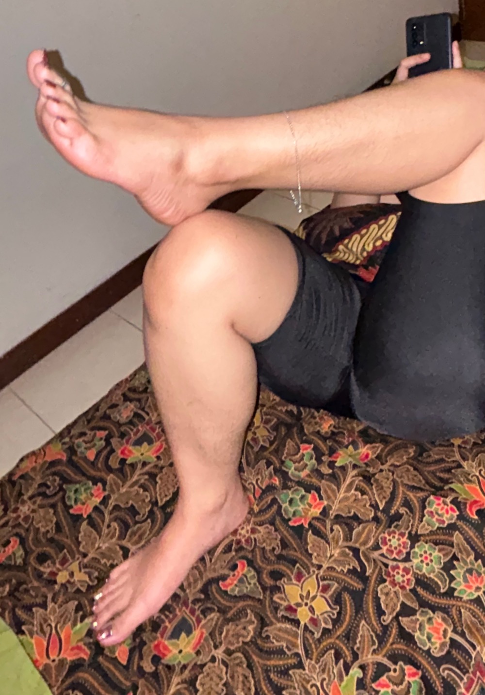 almost always is indoors. He had commented on how beautiful her feet, and