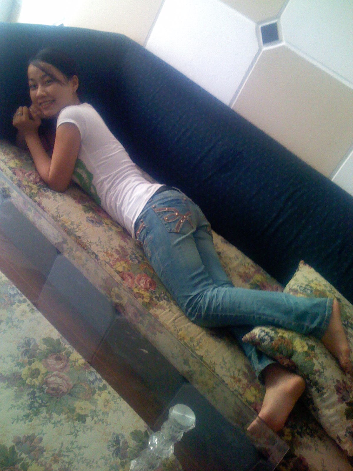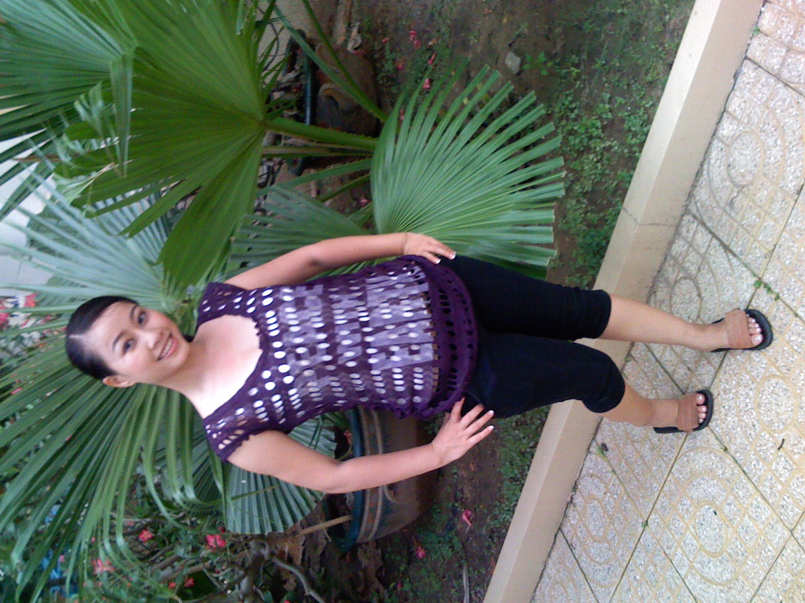 She says, "I took a couple of pics with the trousers that I wear at home, and I hope that all of you will like them.