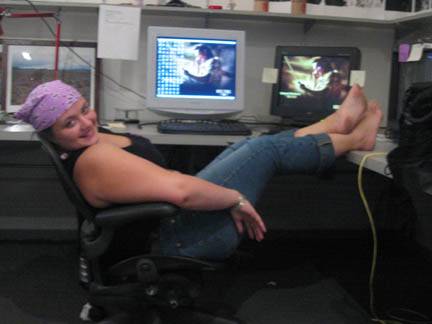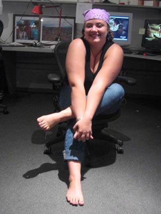 if you wanna see more of her, and what (soles, toes, bare, pantyhose)."