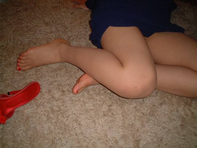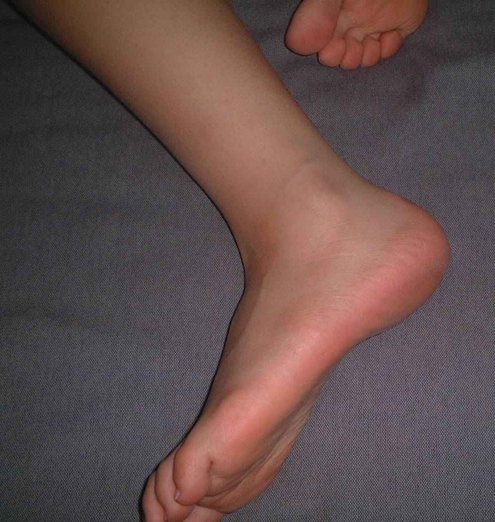 We're told, "Here are photos of a late night footjob from my wife.