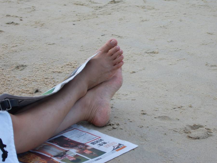is my wife's feet on vacation." He goes on to say that she