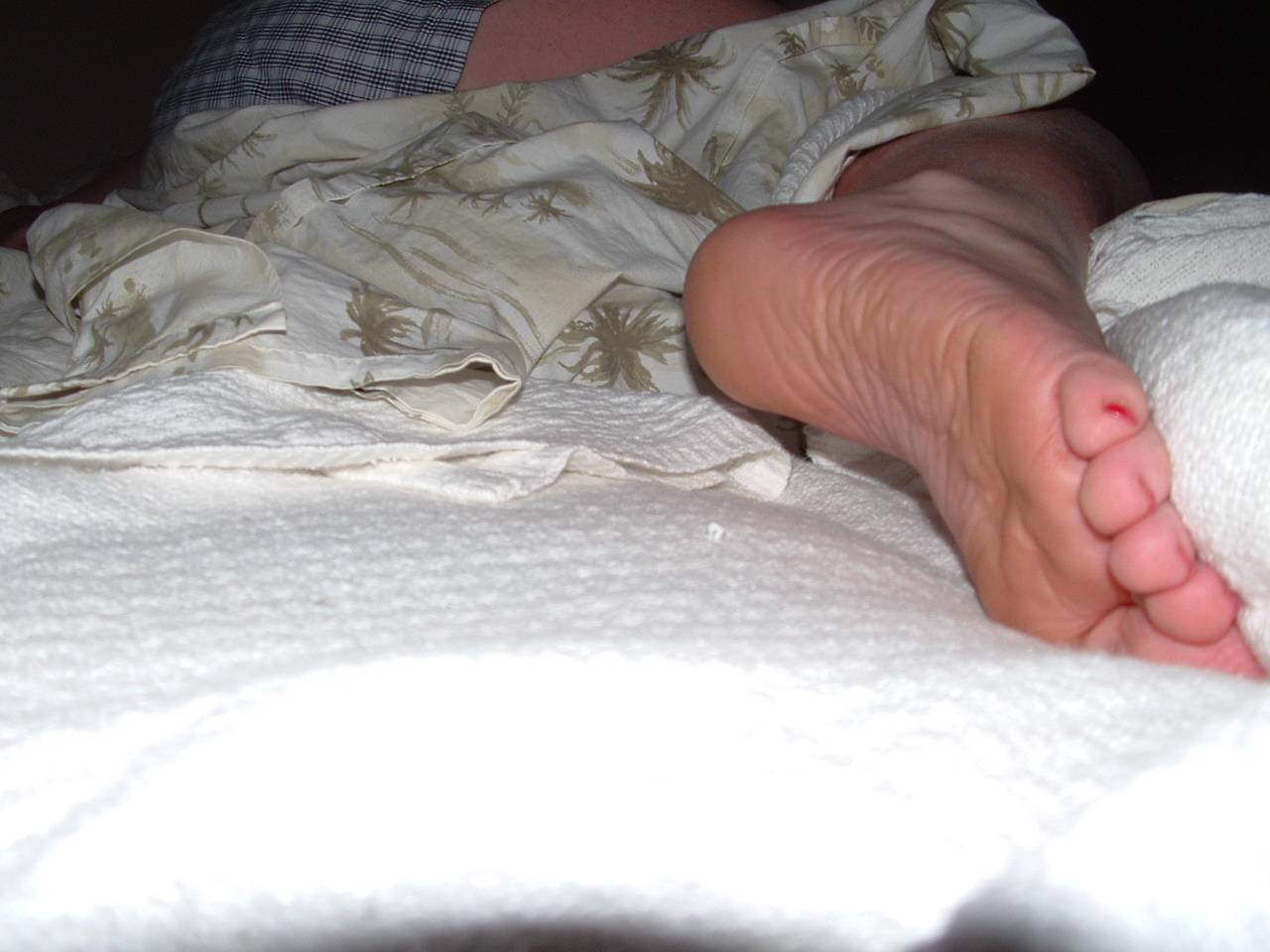 or the light of the flash when I told her I took the pics of her feet and showed them to her.