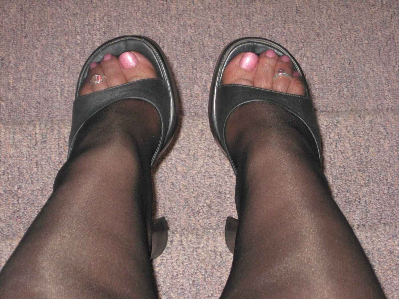 He says, "Here are some of my wife's feet, some of which I have cum on!! OH, how