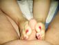 We're told, "So... here we go! I was sneaky enough to get a couple of quick shots of Missy's Feet. The camera was in my
