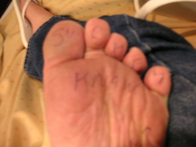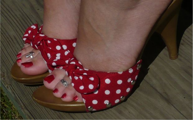 April J says, "Some of my husband's very favorite shots, of my 'delicate, sexy soles' as he