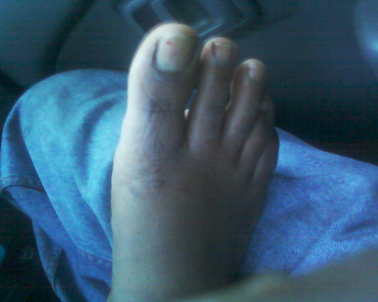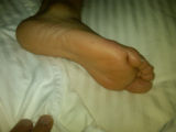 He says, "Just me molesting my wife's passed out feet. Sorry for the quality. These are mobile pics."
