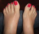 Morris says, "Tanned feet with a hot red pedicure. Enjoy!"