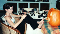 With photos 21-35 Melanie says, "Here I am giving Scott and his camera a foot tease with my black thigh highs and
