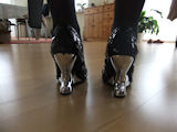 heels with sheer black nylons!! In the mirror box so you can see all