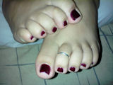 was to let me rub my cock on Her tired and fragrant feet ... The dark red polish pictures speak