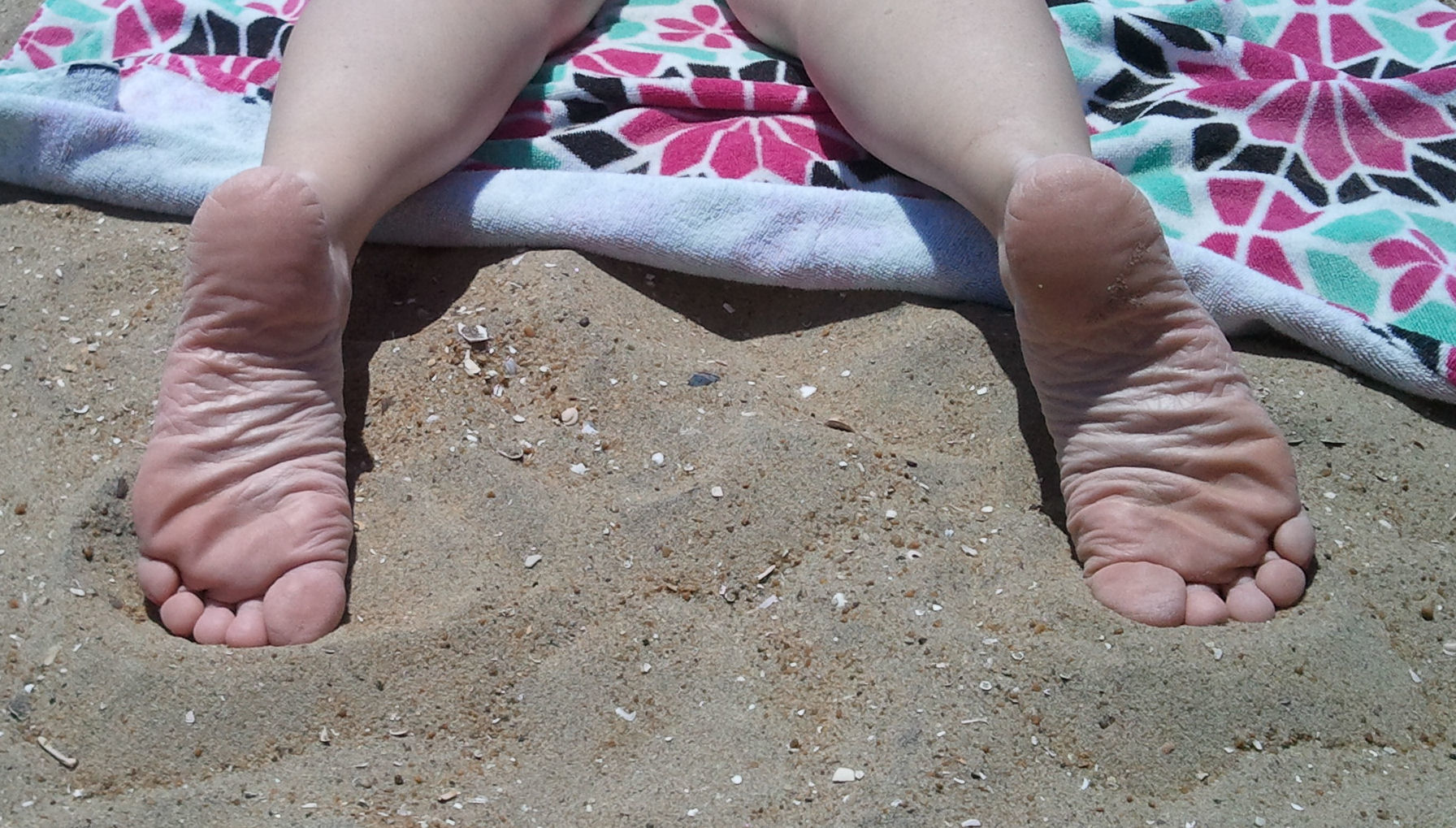 unpaved sidewalks or on the boardwalk. Their feet are sun-kissed pretty."