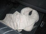 member with casualness: she pushed it between her soles and heels, stretched it, crushed
