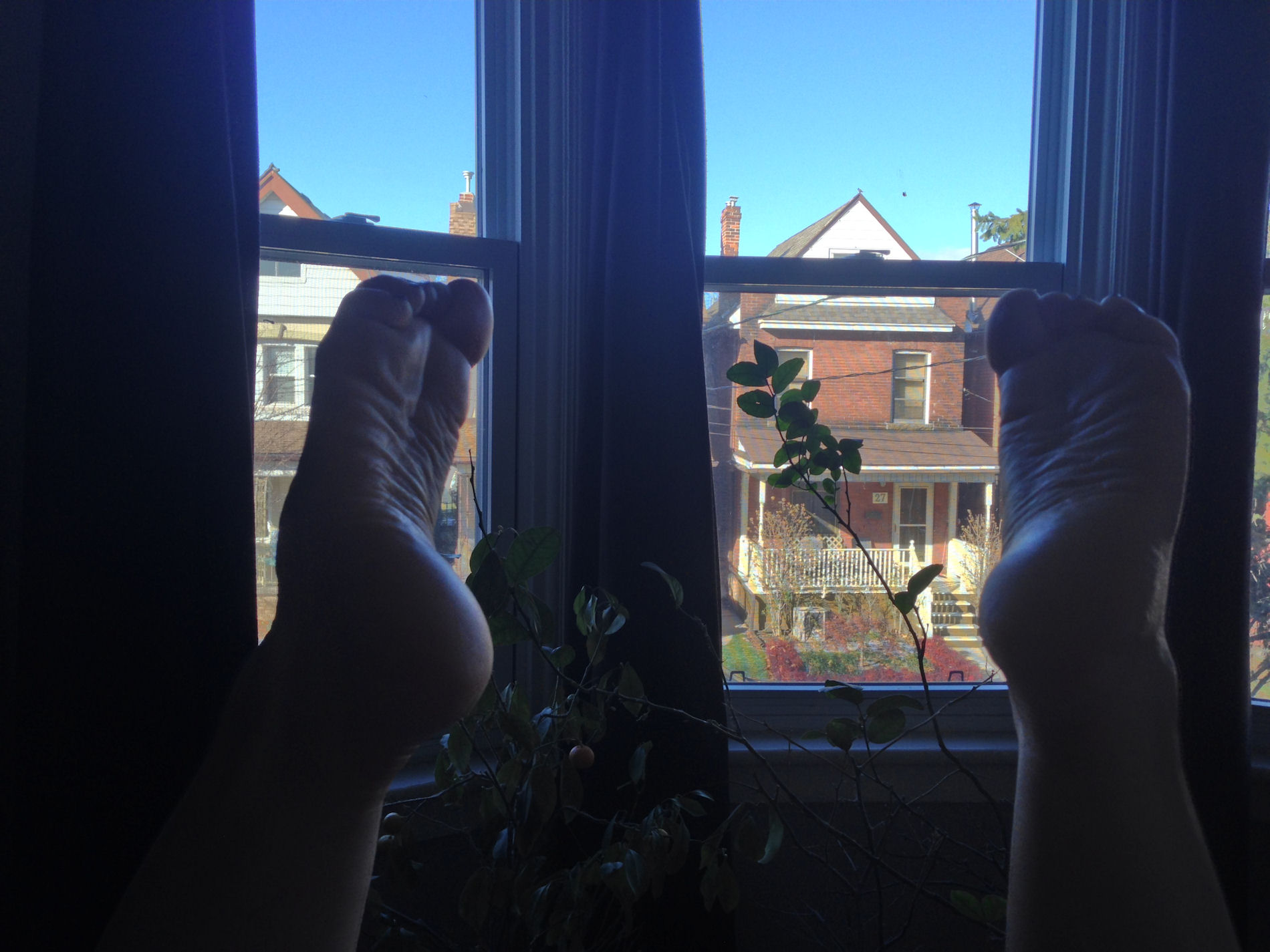 here, bare foot pictures are hard to get (friggin socks!!), but I managed to sneak