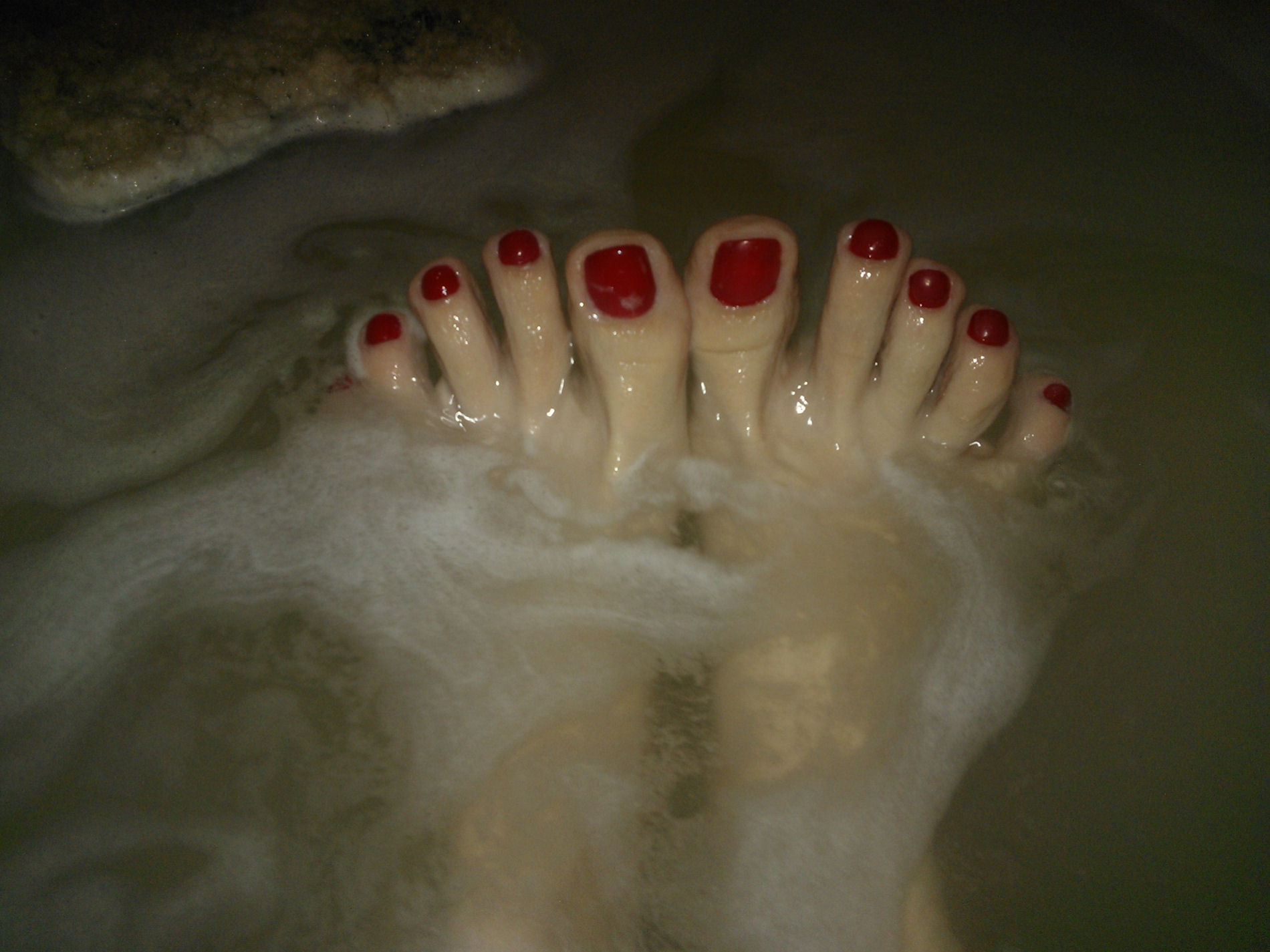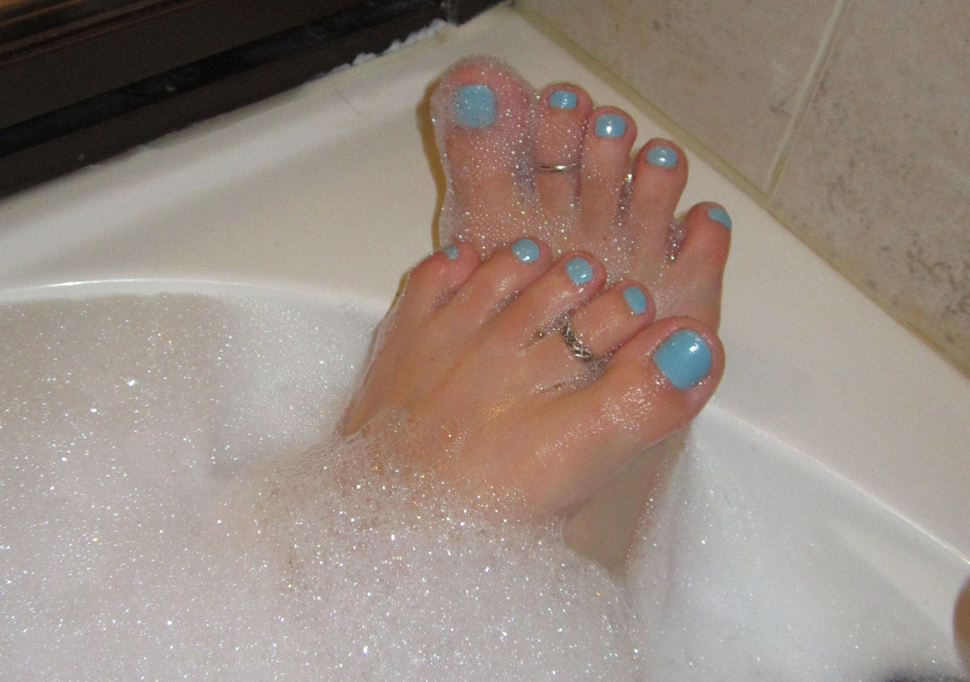 I gave her a nice massage and foot rub. Then we got into the bath together for some hot foot action."