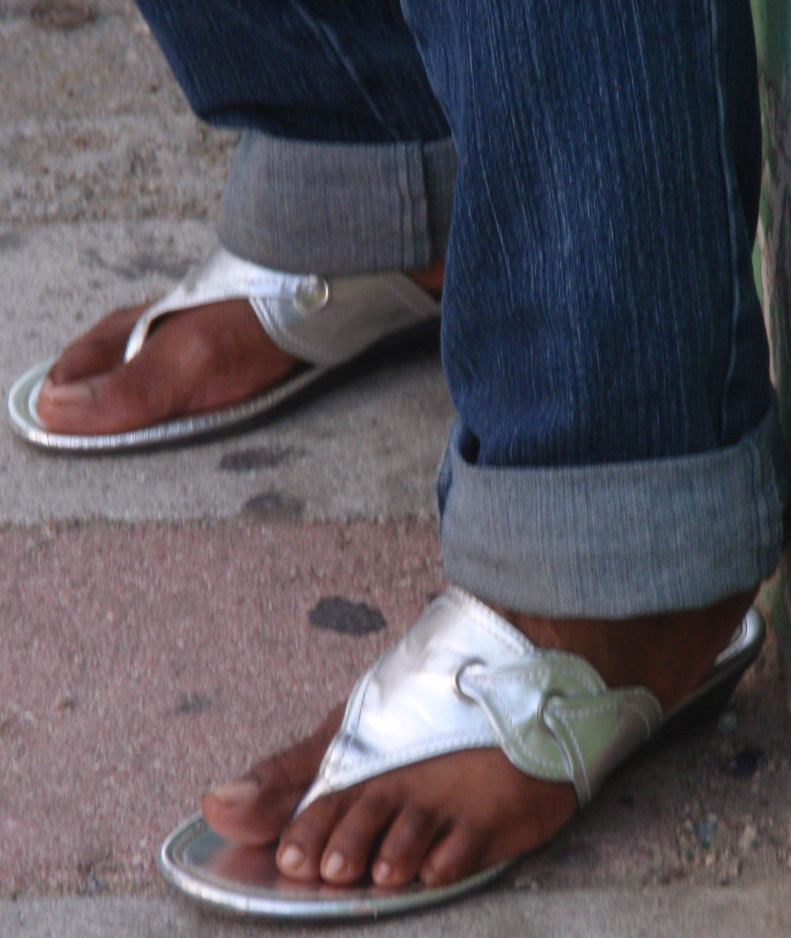 that they wear flip-flops or sandals to do their shopping. I love to see their feet when they shop."