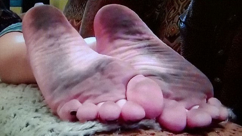 With the 1st photo he asks, "Some dirty feet. Who would like to clean them?"