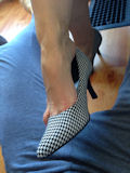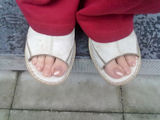 He says, "My wife's cute tootsies (size 6 (US) 30 years old)."