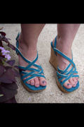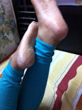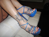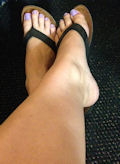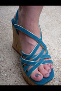 We're told, "ToeGirl Blue stirrups with blue and black painted toenails (and a cummy finale)."