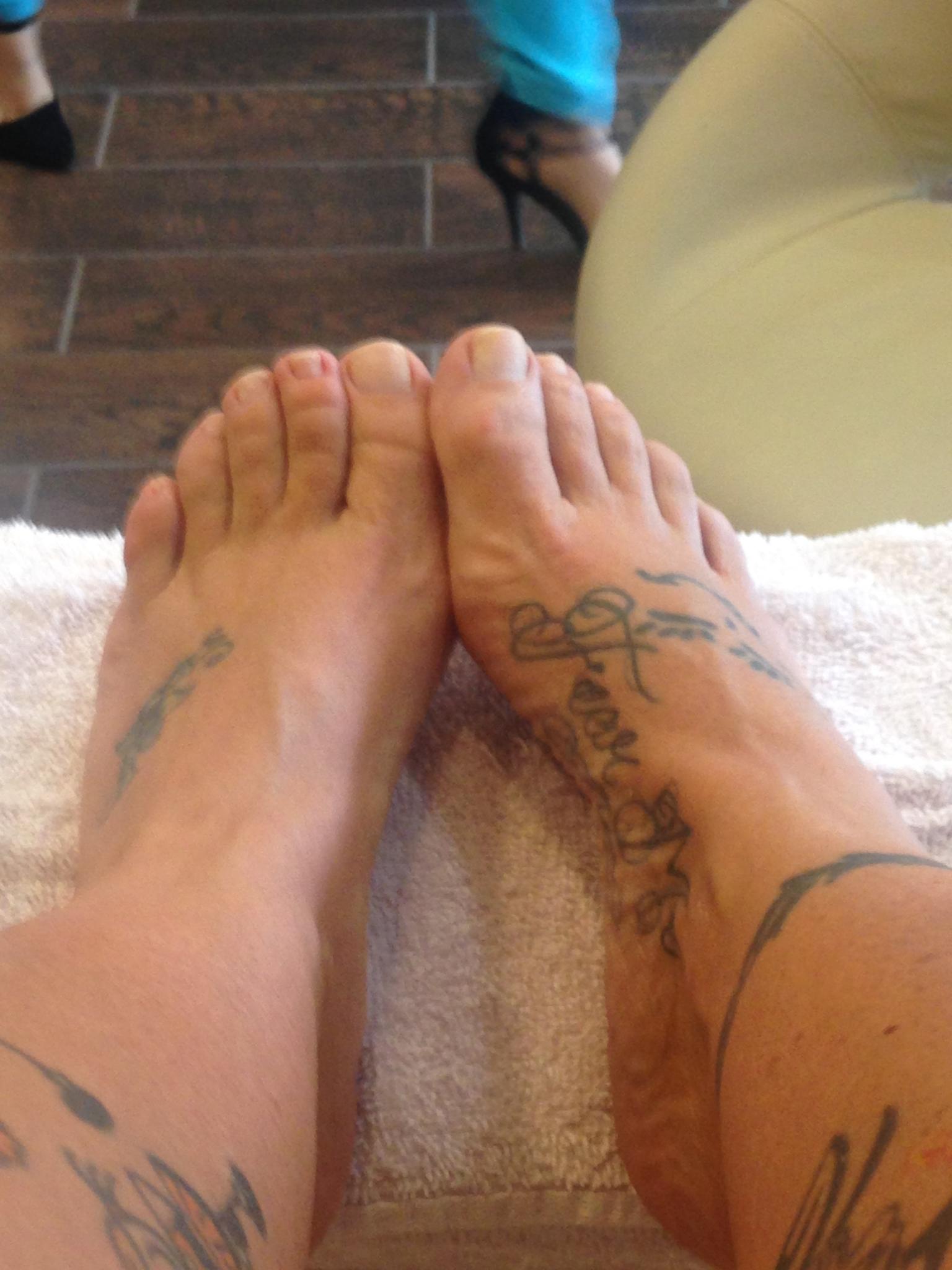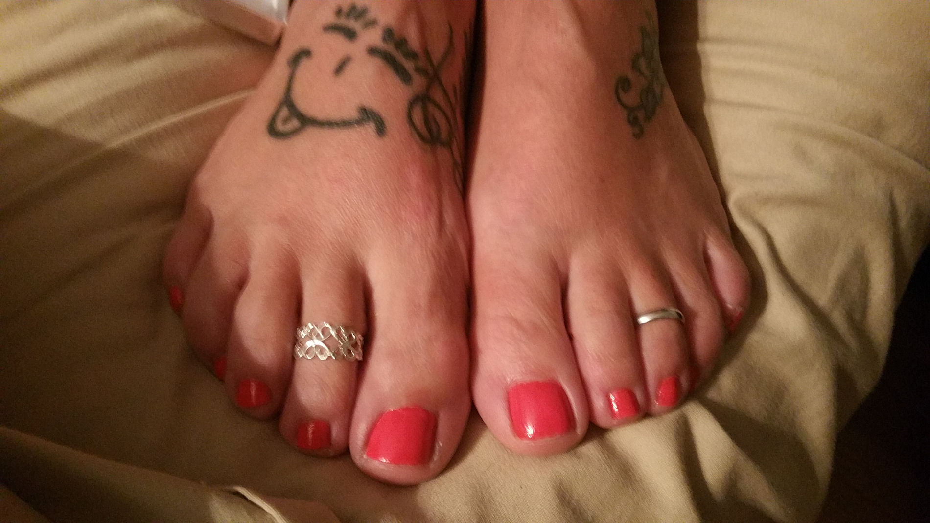 me, and on top of it ... my cock, and her feet are the same size ... very compatible !!!"