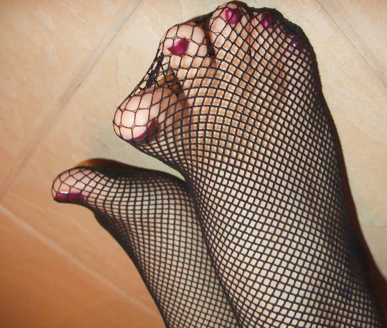 see Jackie give a footjob in a black fishnet stocking. We love all the supportive