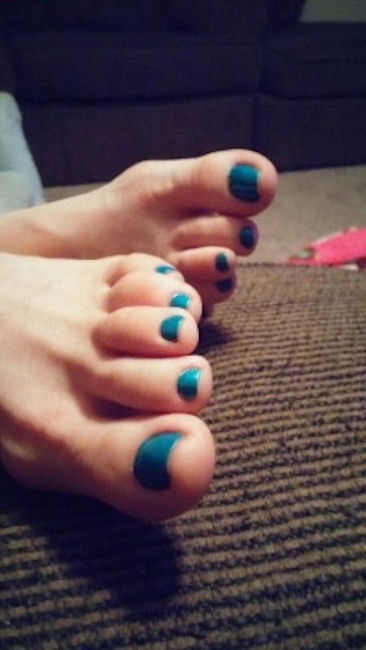 With the last photo tells us, "My sister-in-law's beautiful feet. Feedback appreciated."