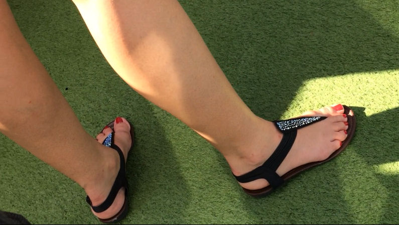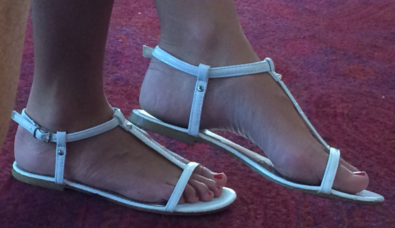 outdoors in the summer, especially when she publicly exposes her barefoot soles."
