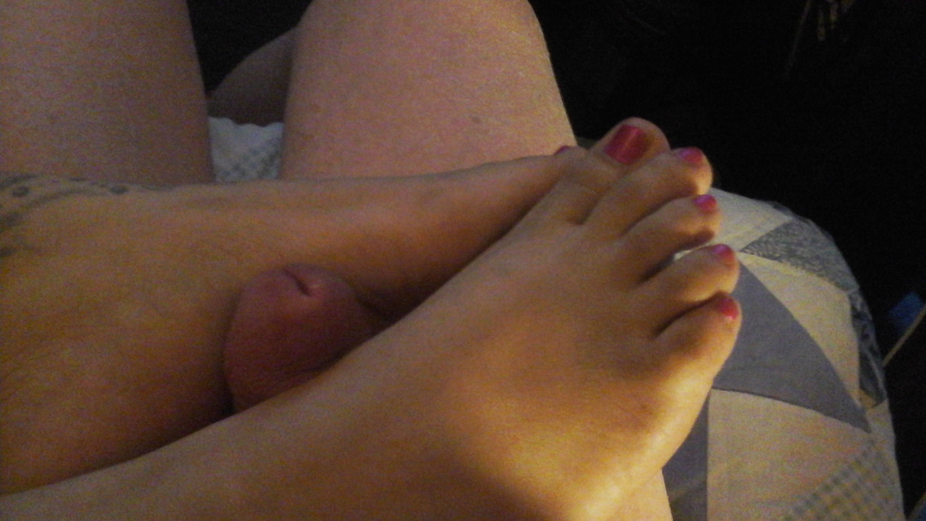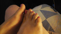 He says, "Just a few more of Julietta with her usual pink coloured toenails."