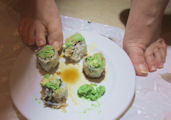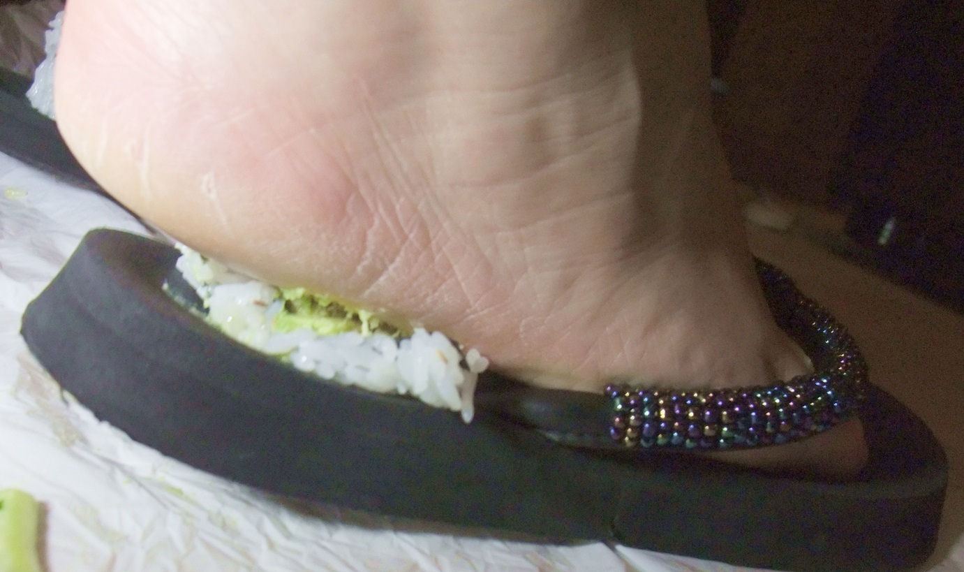 with sushi before she feeds them with her feet. After the feeding he wanted