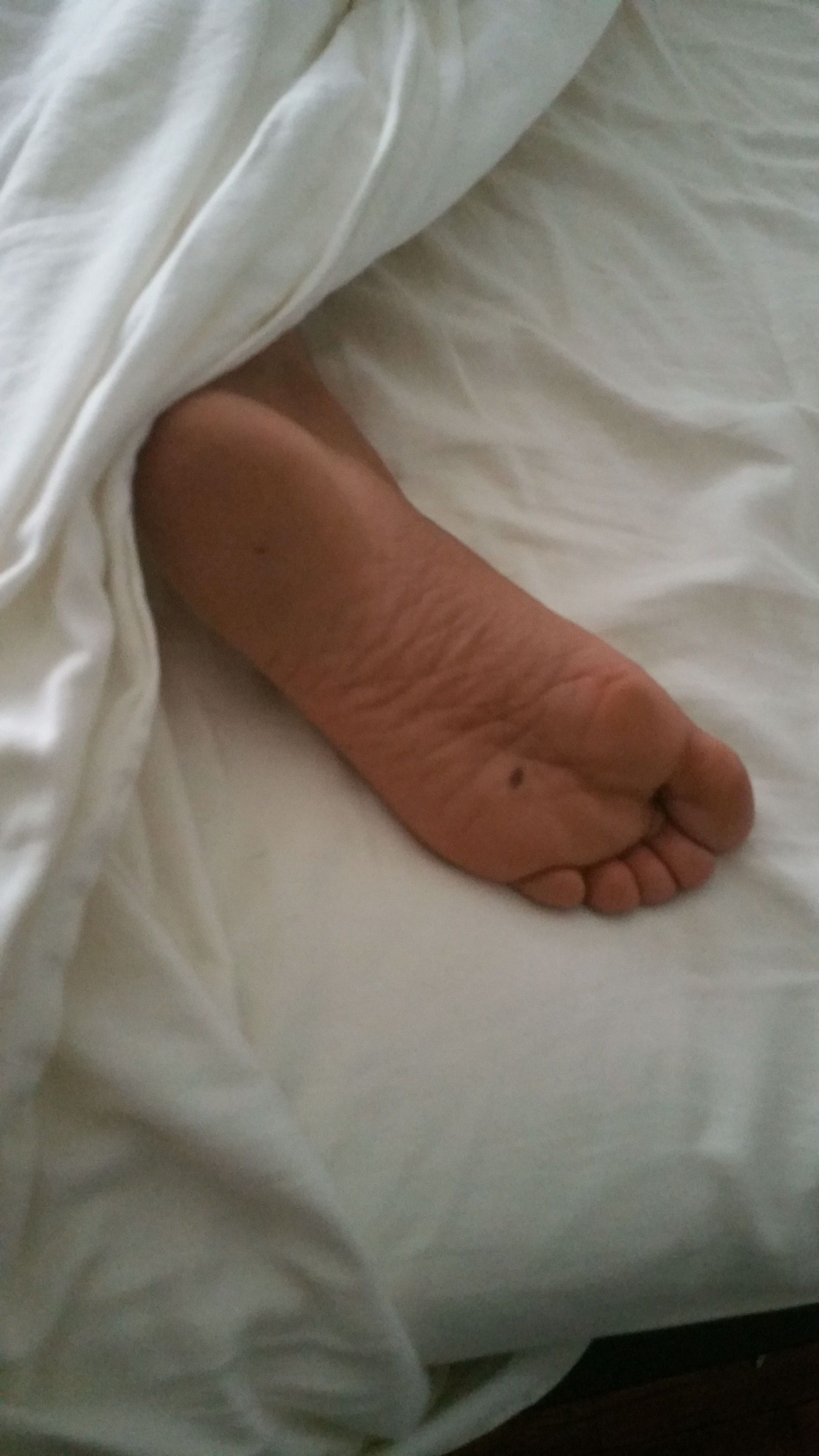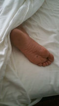 He tells us, "Dee's feet."