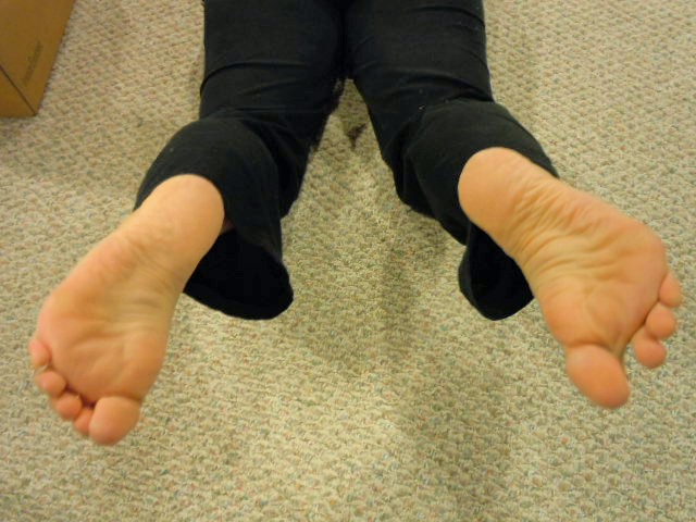 He titles these photos, "My wife's delicious barefoot arches and soles."