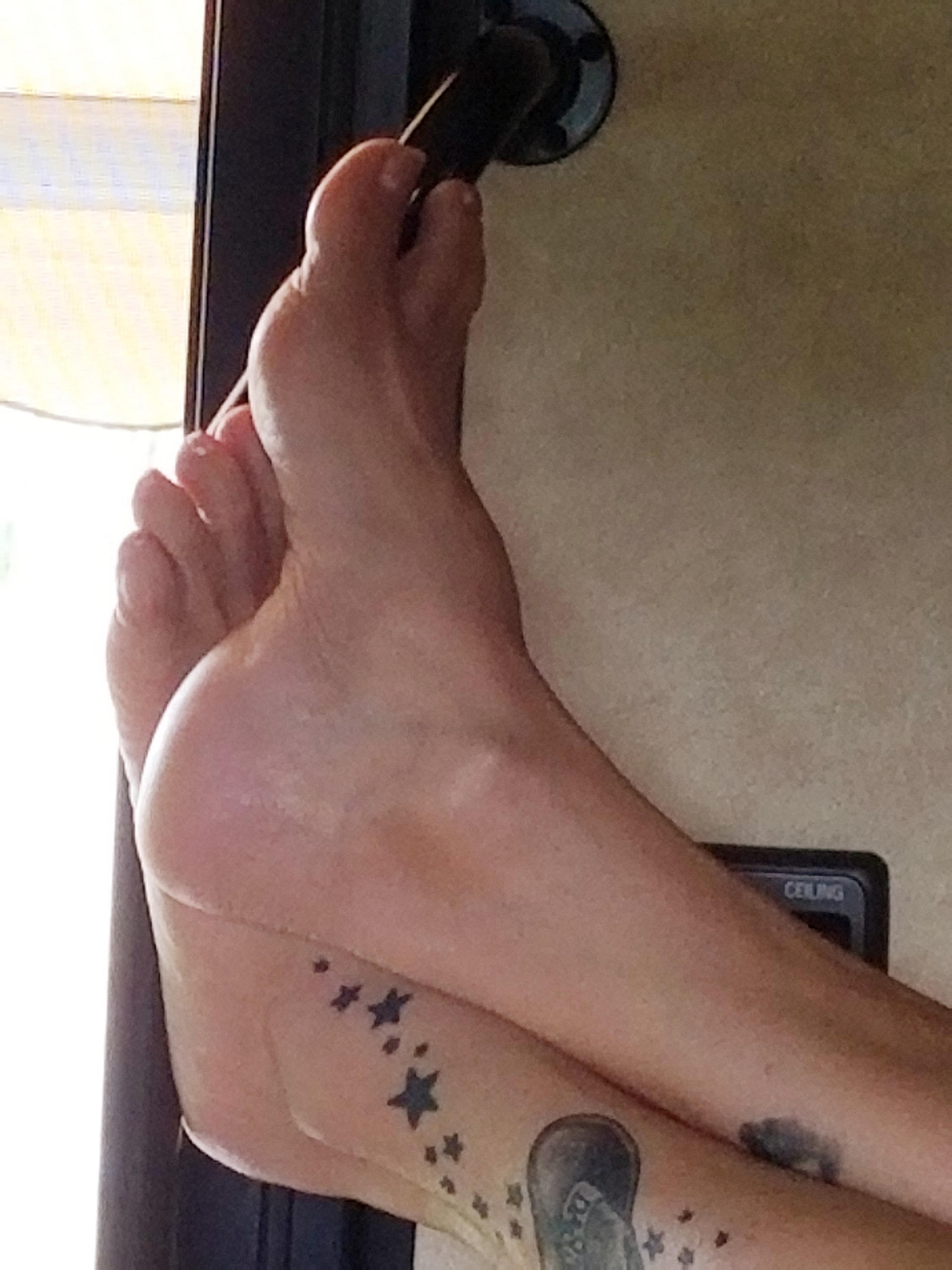 For the 2nd photo, she posted on her site, "How do my wrinkles soles look?"