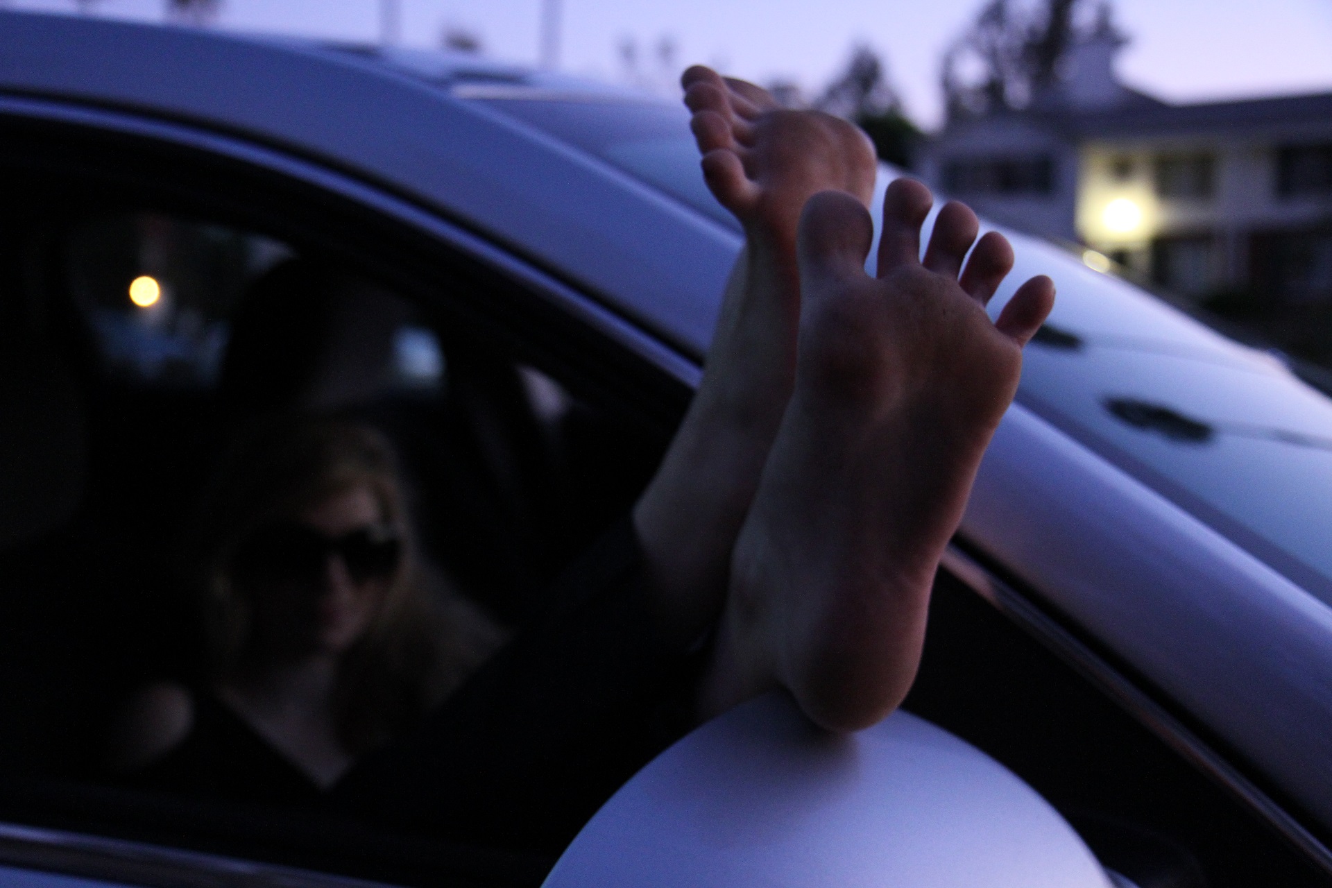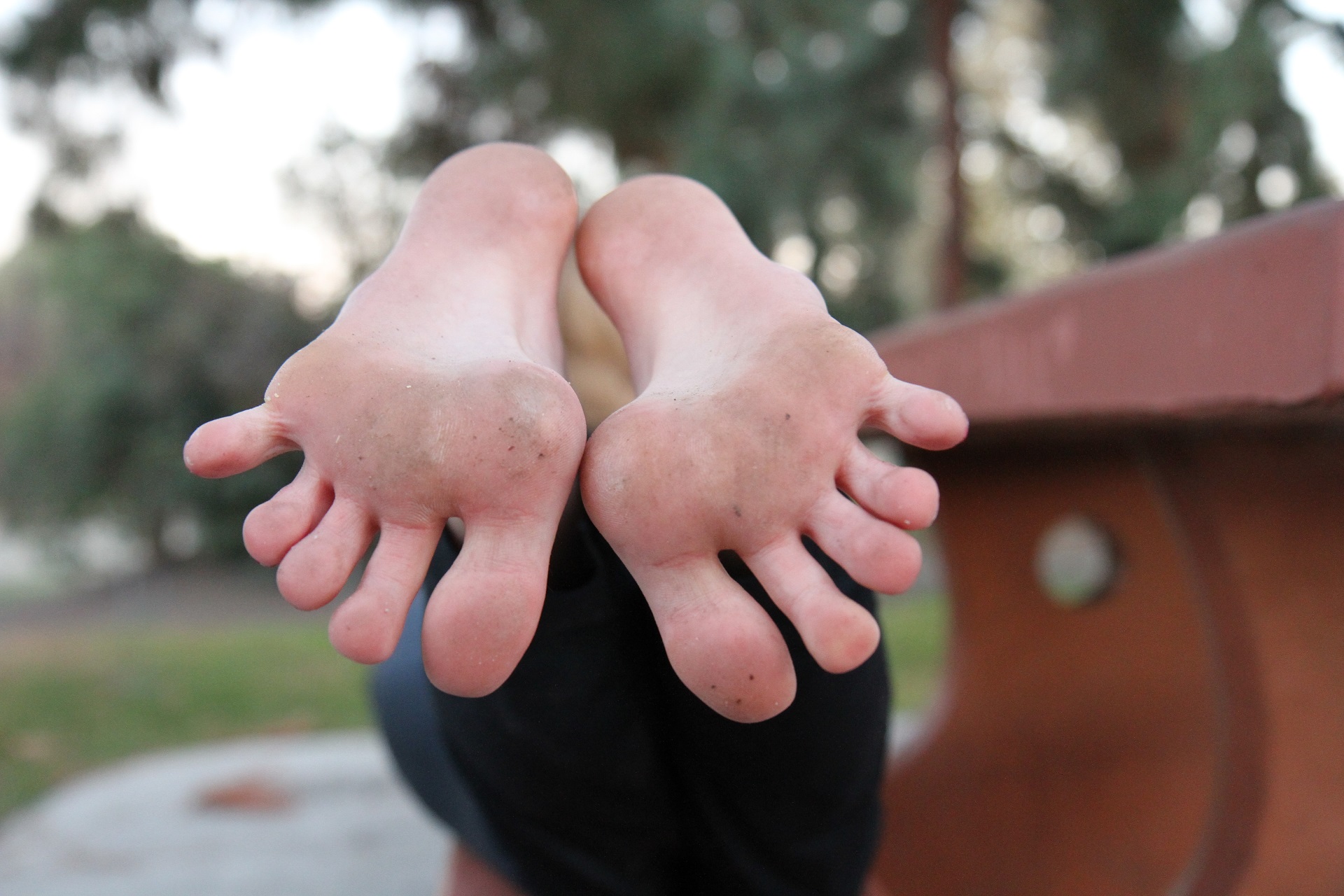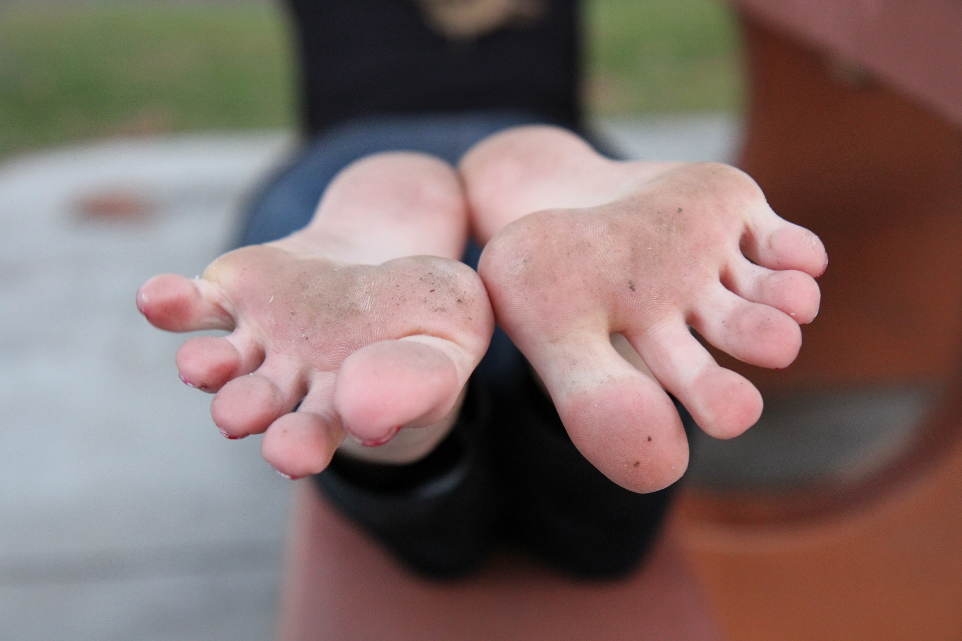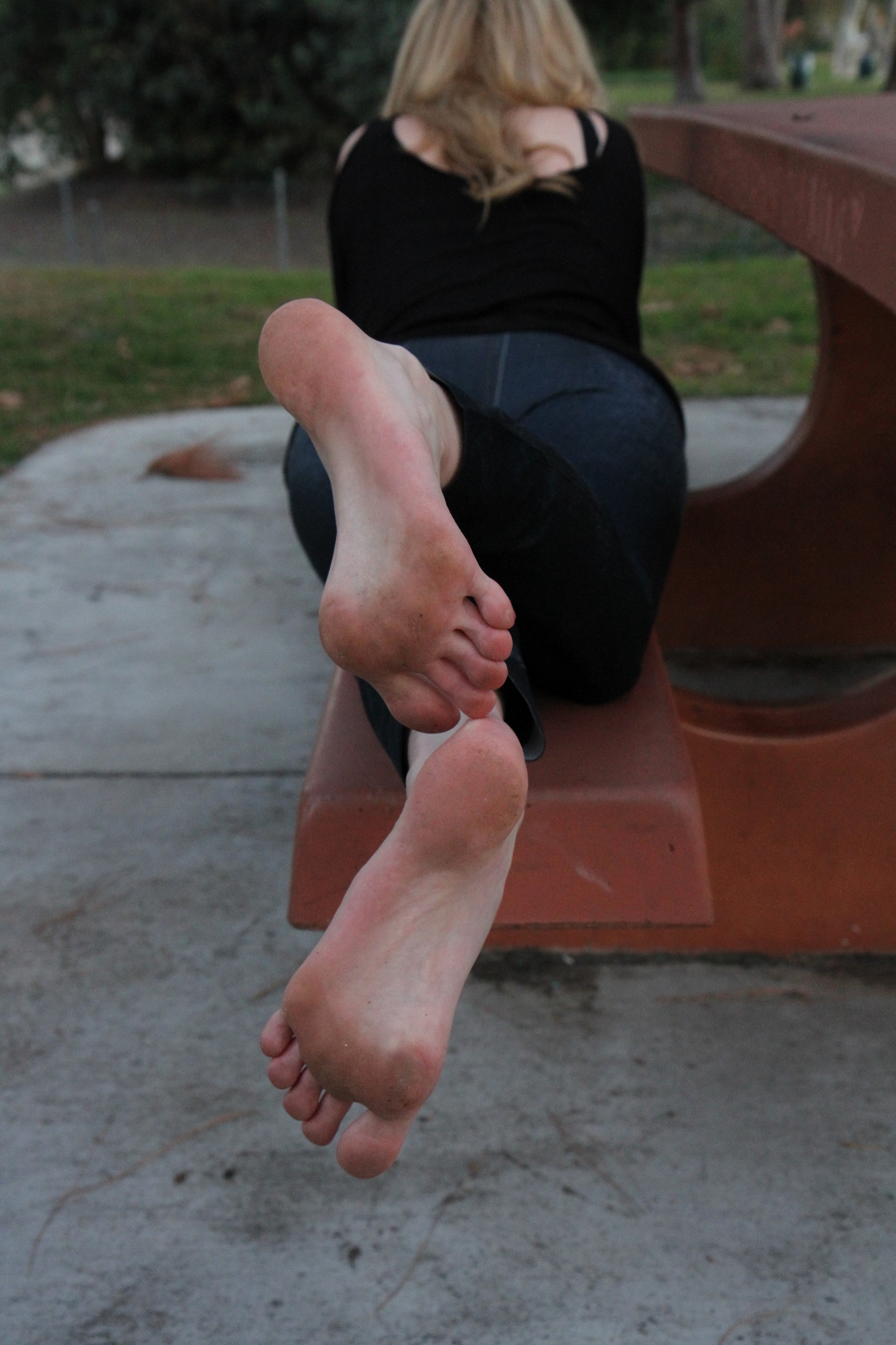 I captured her bare feet, soles and brightly painted toes in a