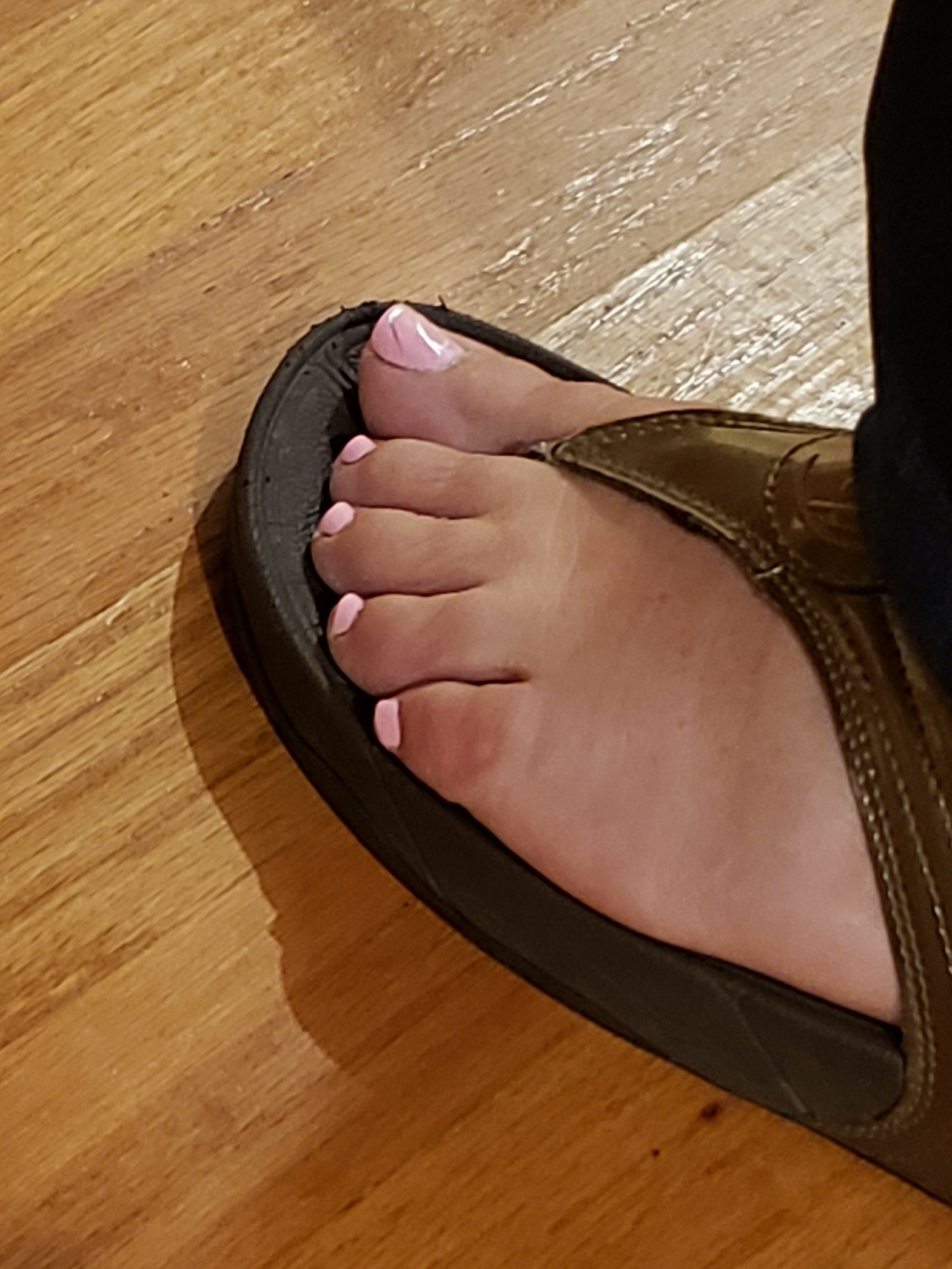 He says, "Got her to do her toes pink with toe art for our Florida vacation this week."
