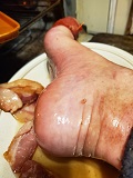 broiled apple flavored bacon wrapped pig foot basted in savoury