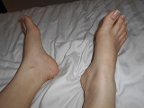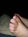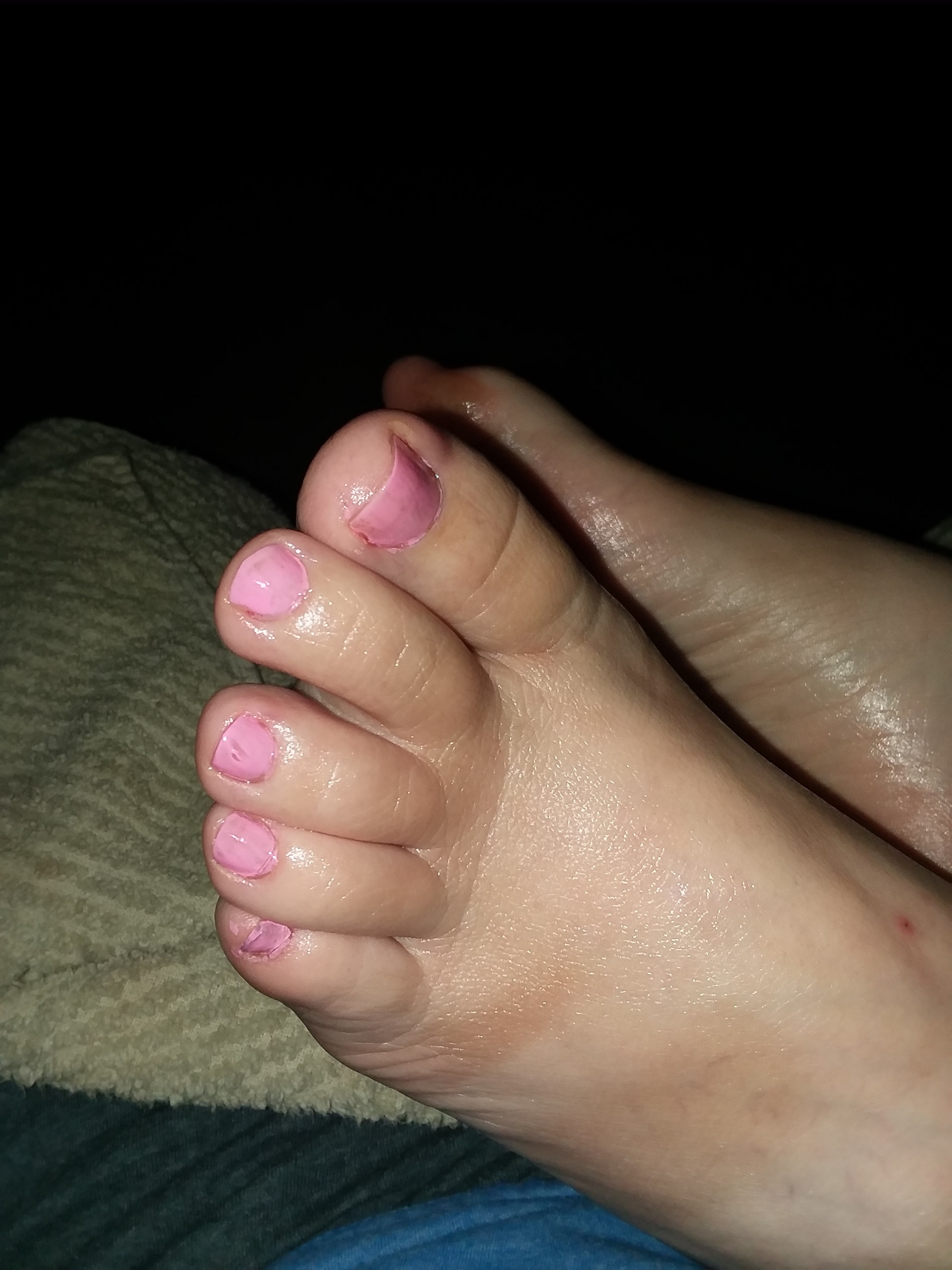 some moisturizing cream into her feet, so that's why they look a bit shiny."