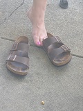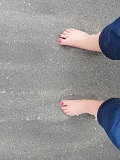 She says, "Some dirty soles for you guys. I was barefoot all day."