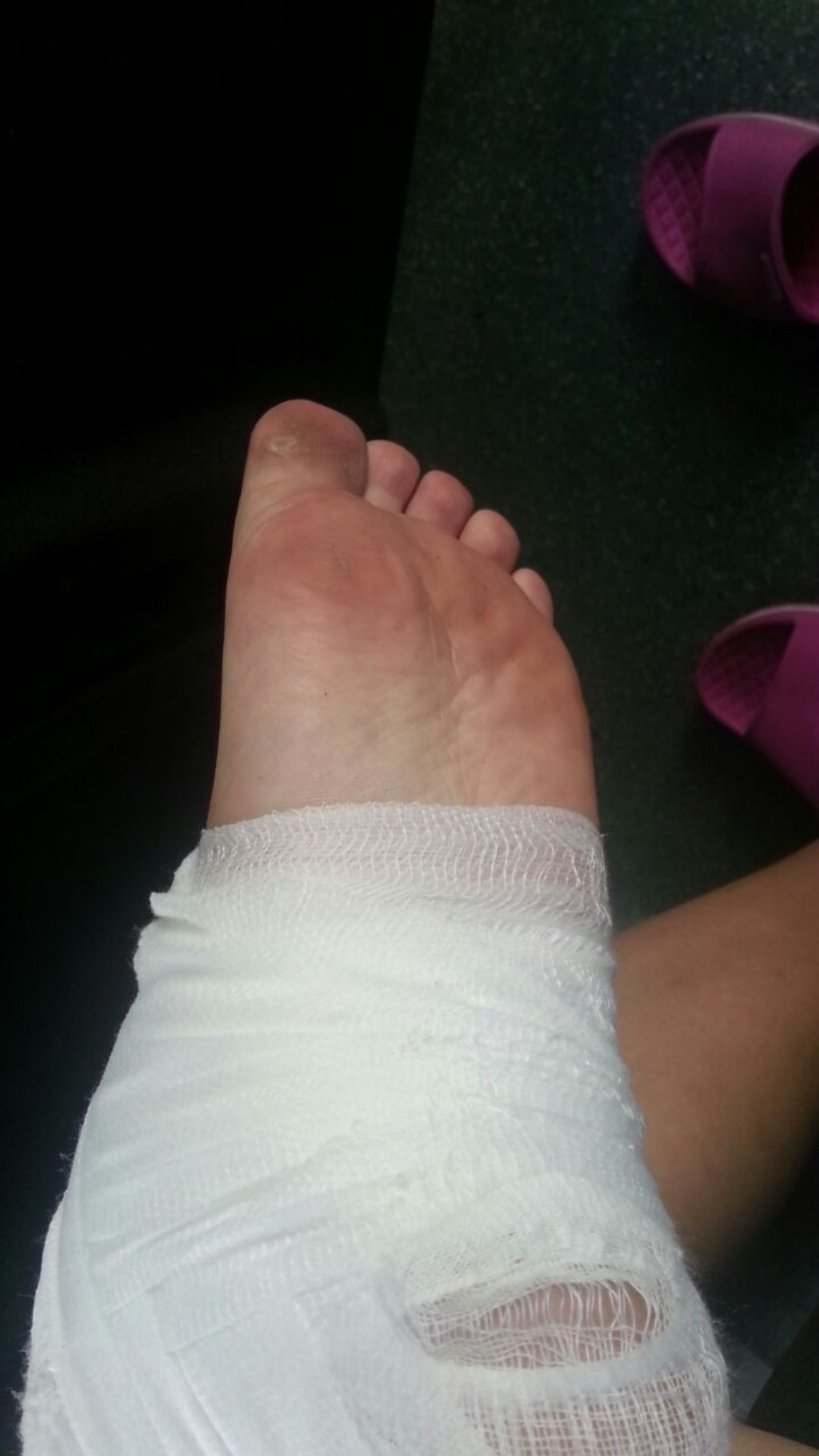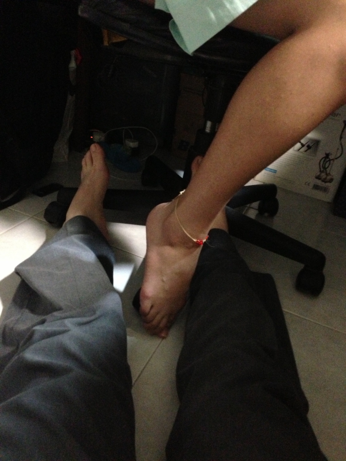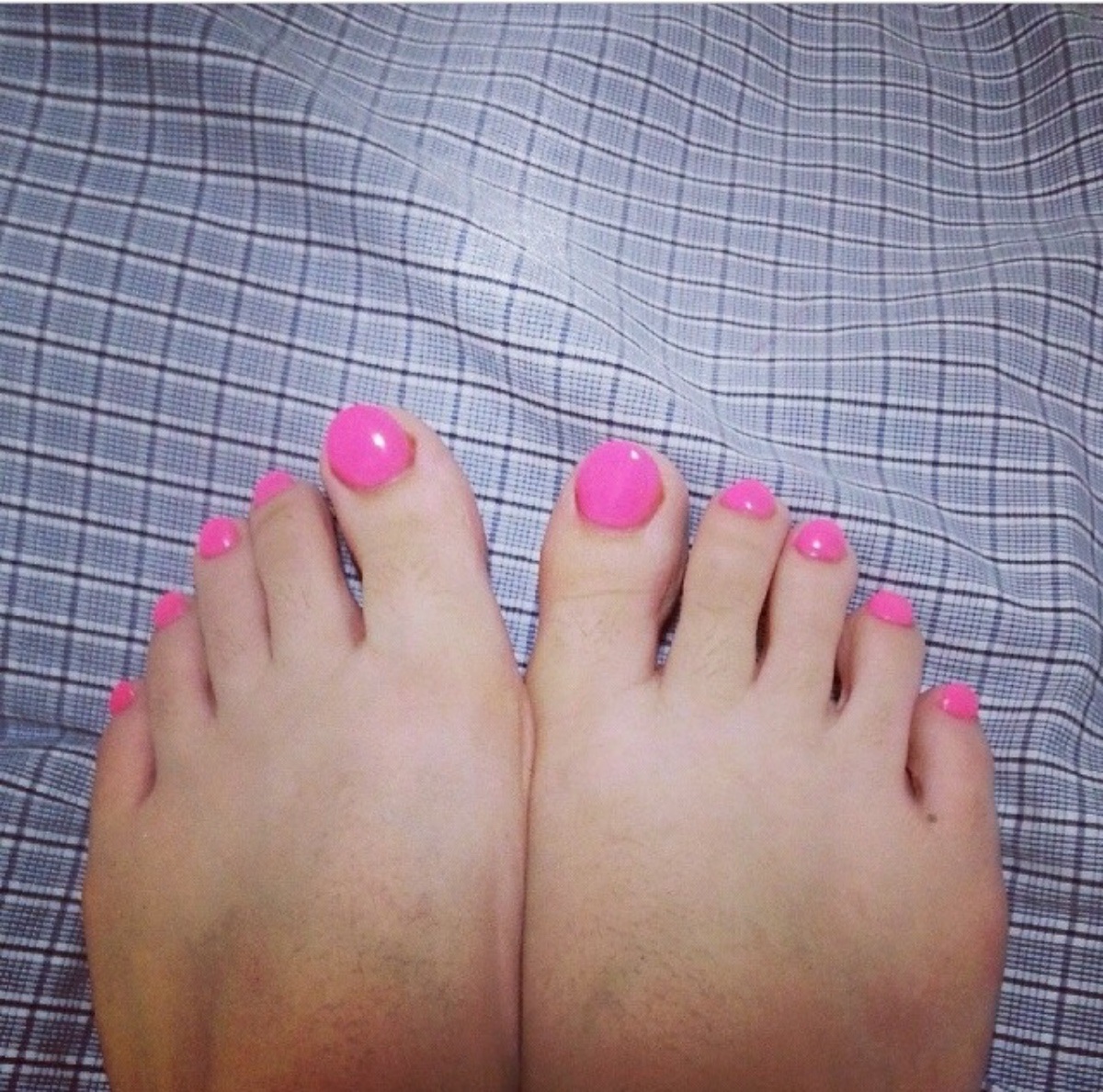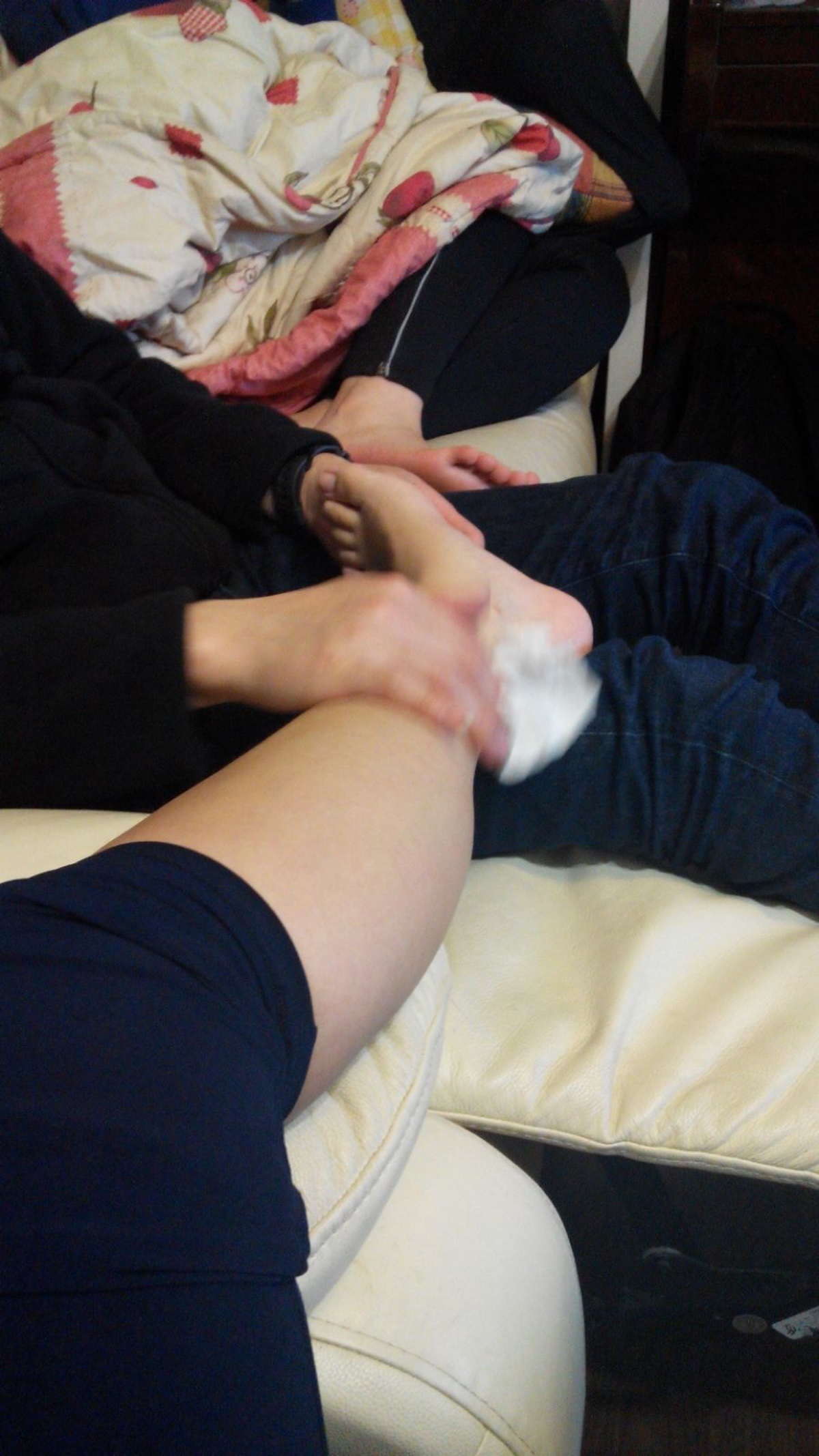 They say, "Here's a sole fuck of her perfect little feet covered in oil."