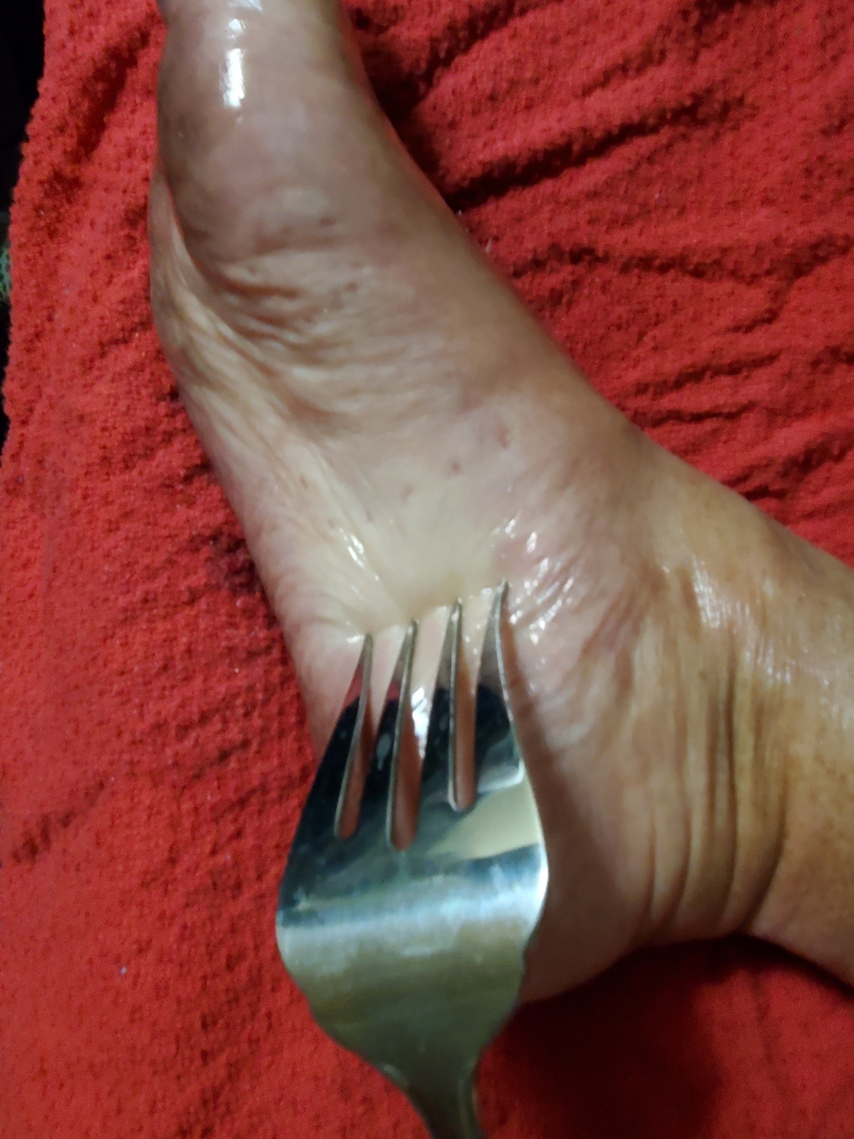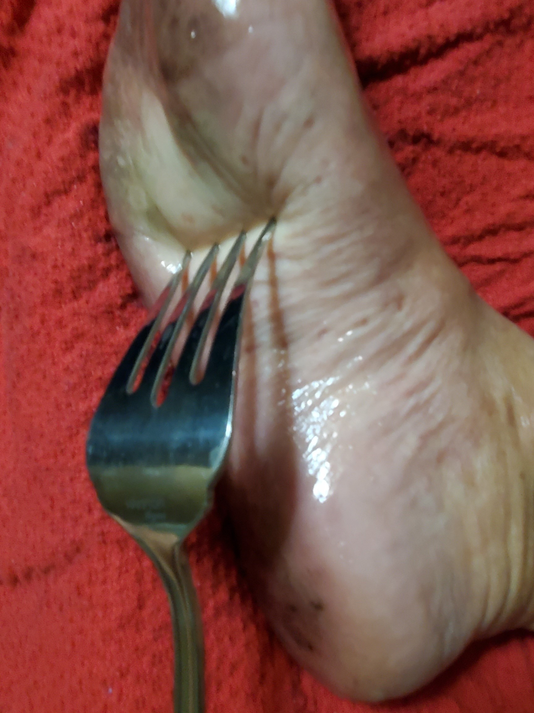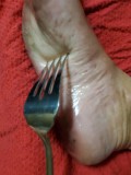 raking my sweet arch and sole. See how deep the fork goes into my meaty piggy."