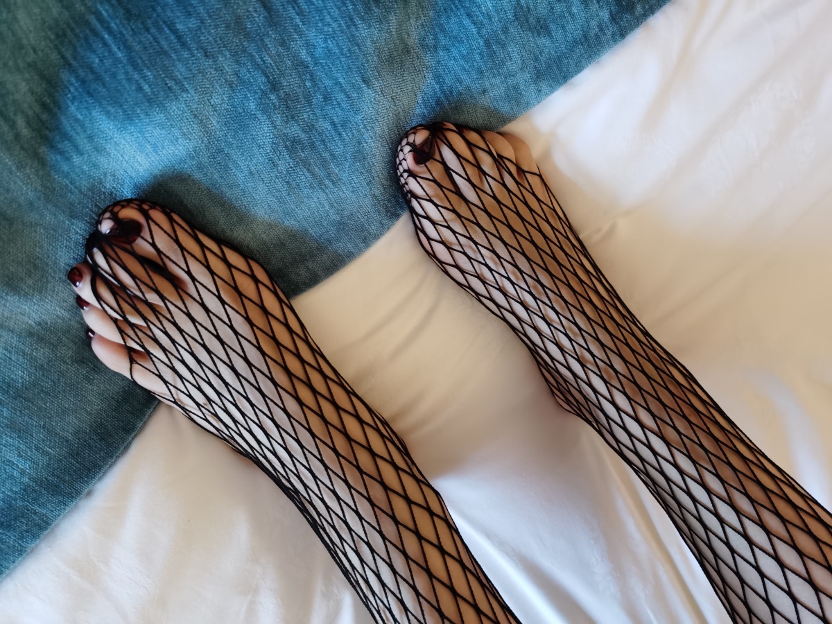 We're told, "Shiny red toenail polish, and very suckable toes!