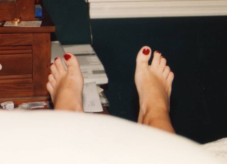 She saw my wife's bare feet & wondered where she