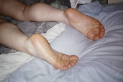 He tells us, "My girlfriend H's legs & feet."