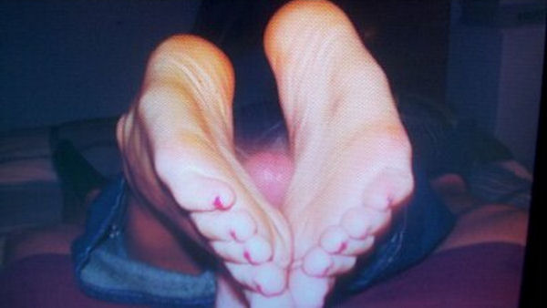 We're told, "My friend loves my beautiful feet. Kiss them and smell them, and enjoy. He also likes