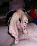 He says, "An on-line friend's footjob fun of which I rarely ever get to enjoy.