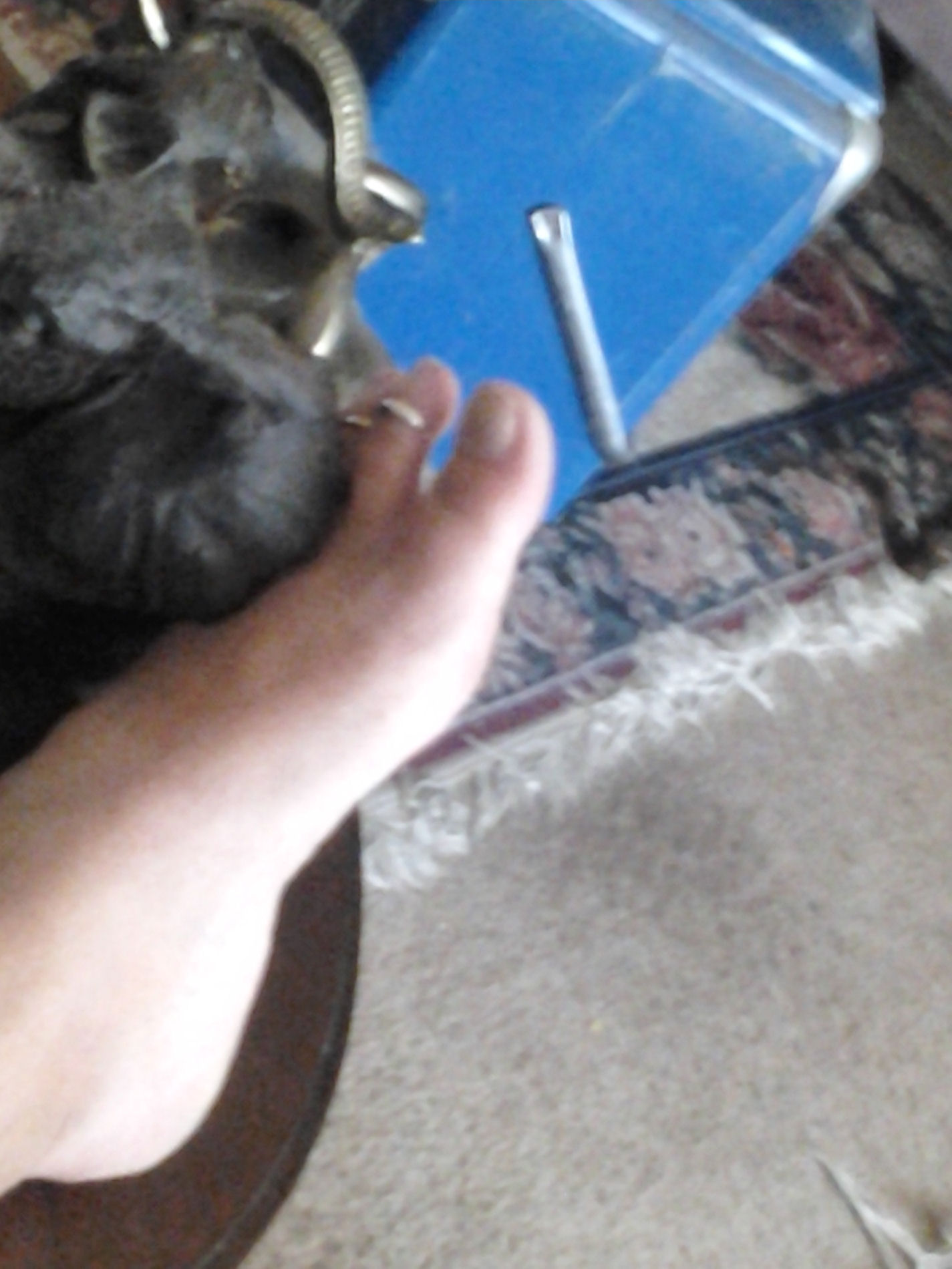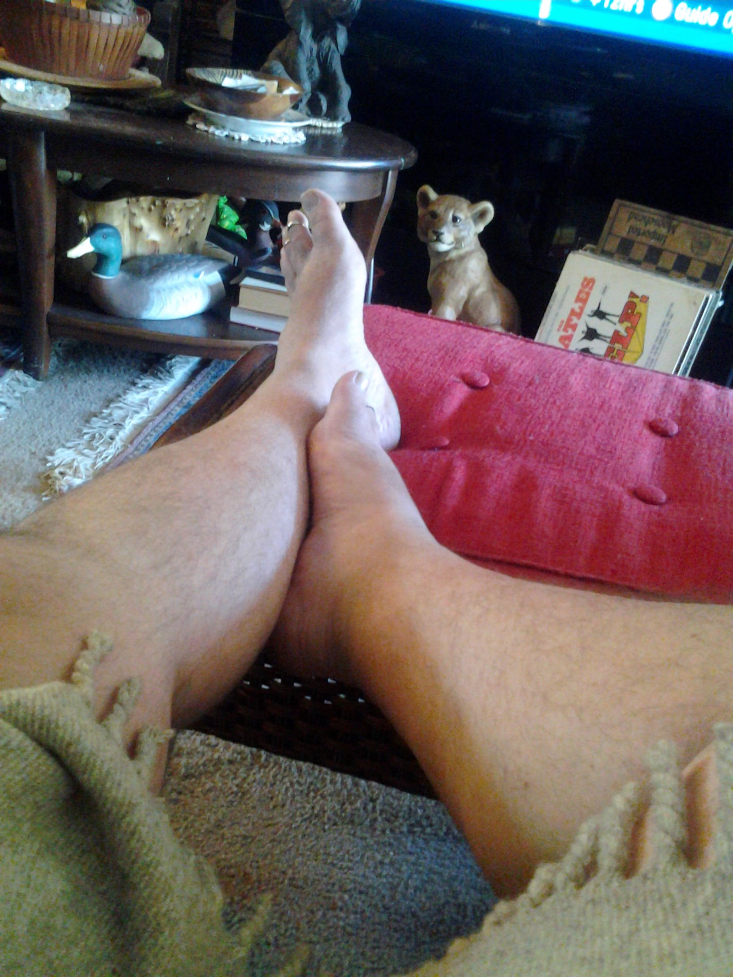 He says, "My cozy warm feet ready to be rubbed, licked ..."