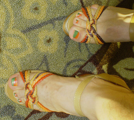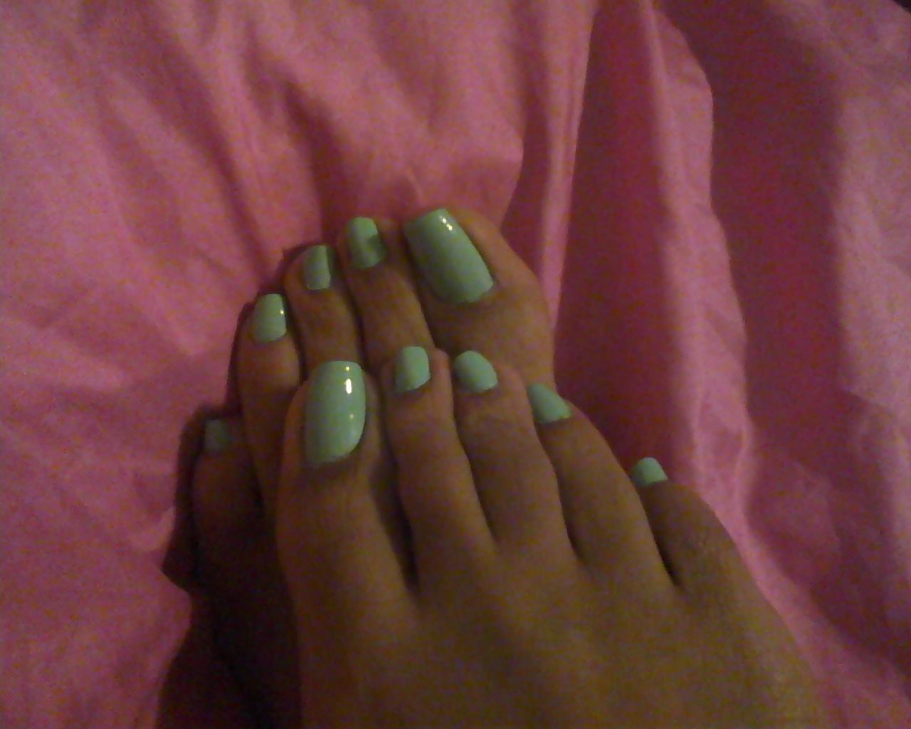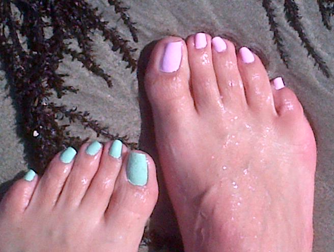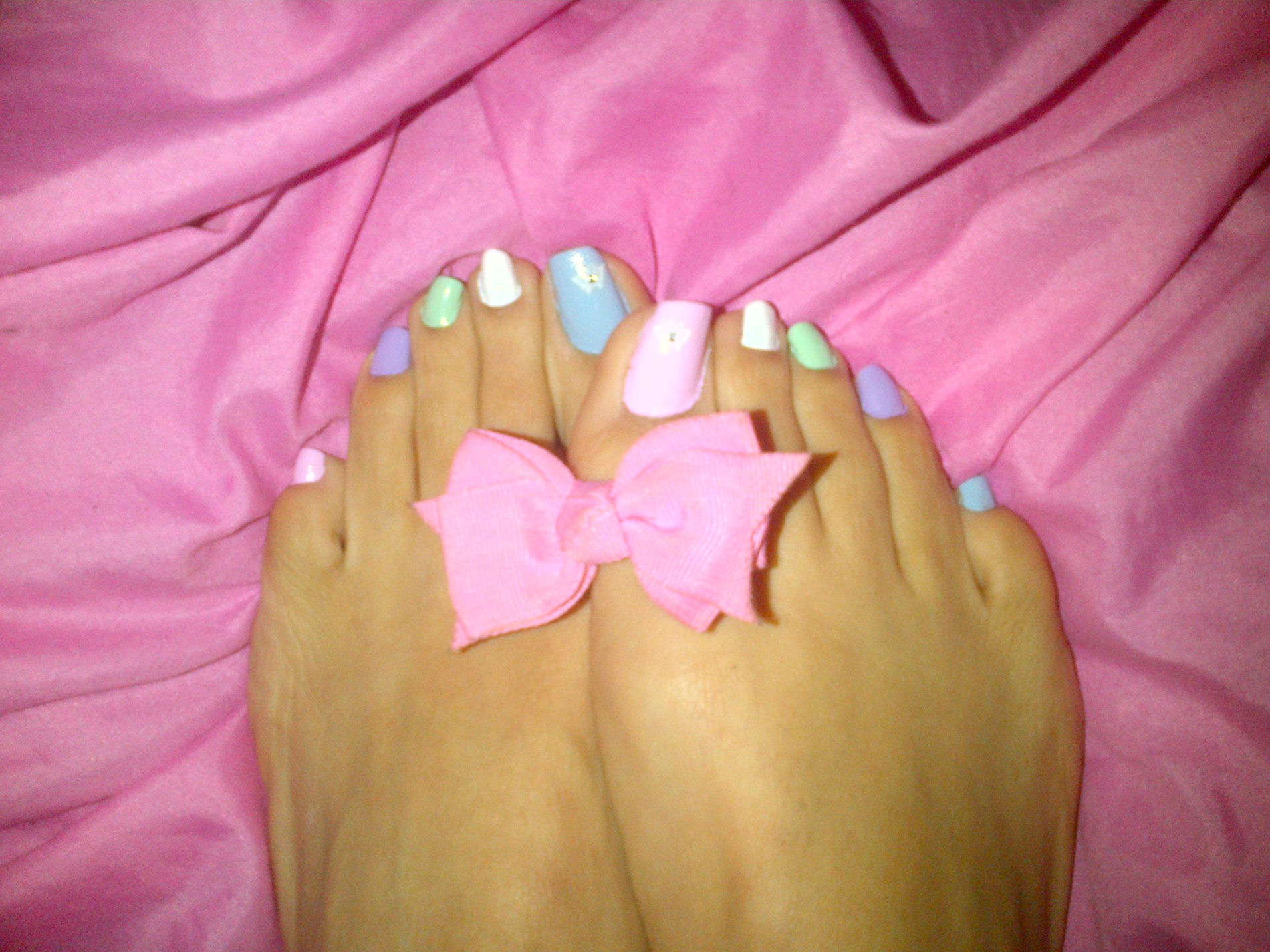 He says, "Here are just a few pics of my toesies sportin' Easter colors. Happy Easter."
