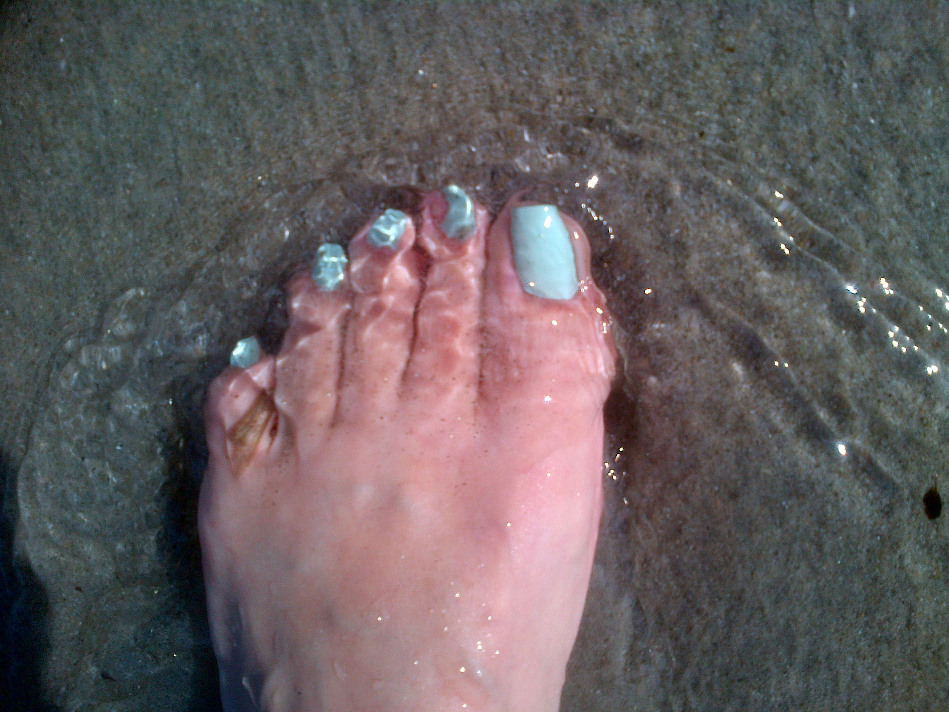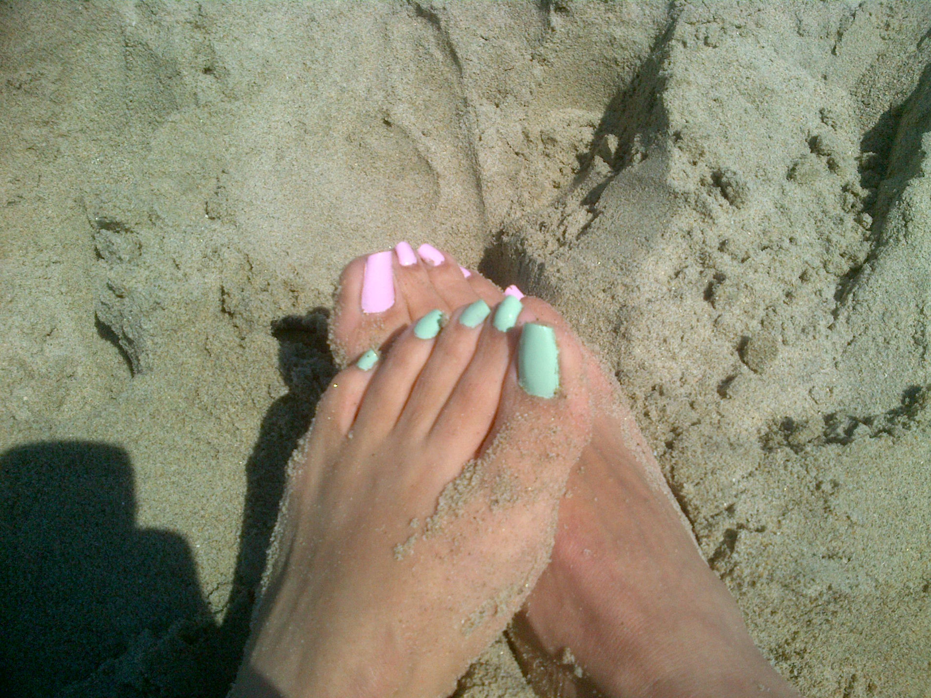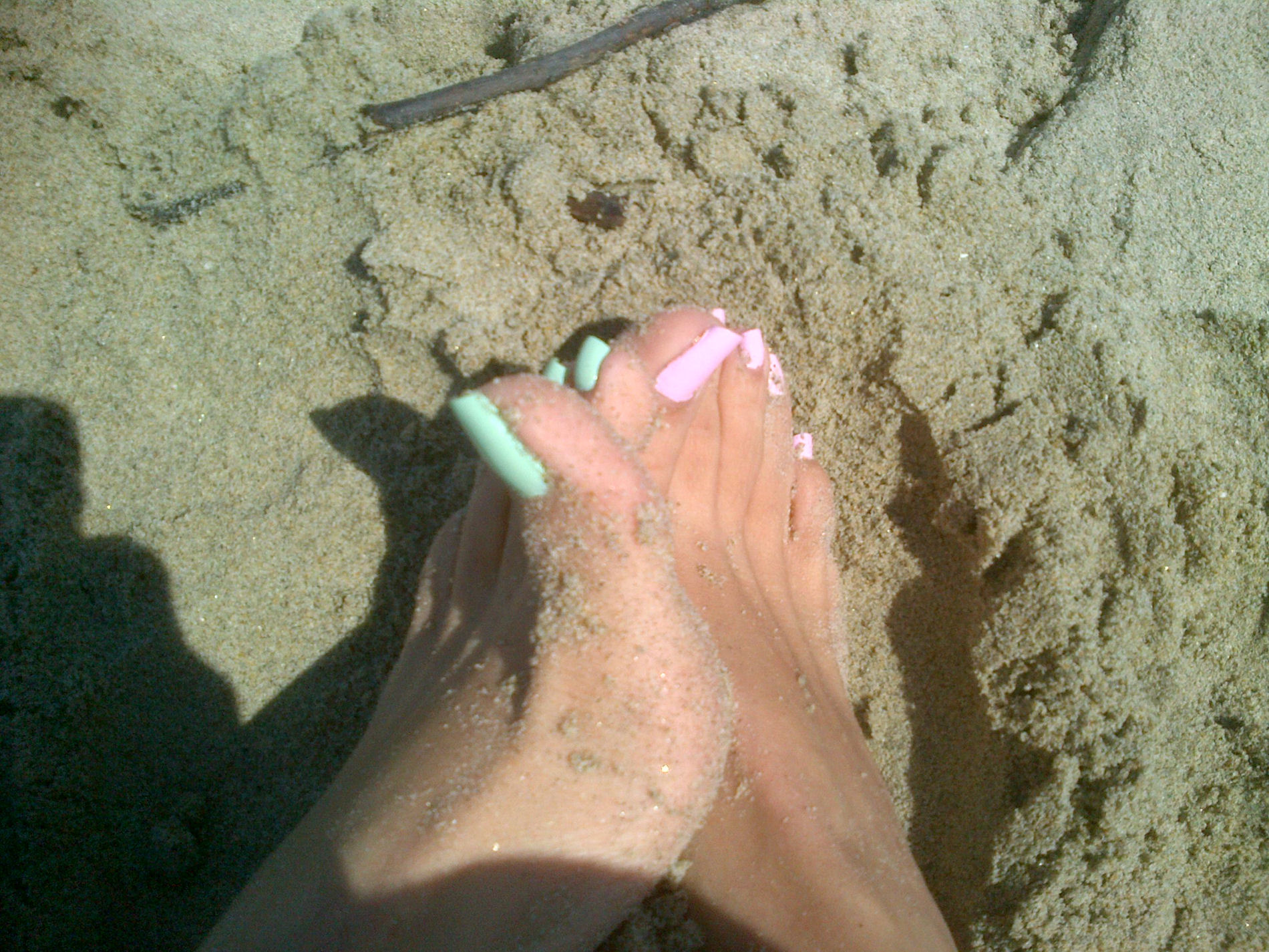 He says, "I went to the beach earlier today for a little mini beach shoot! Here are a few pics of my sexy feet enjoying the sun 'n' surf."
