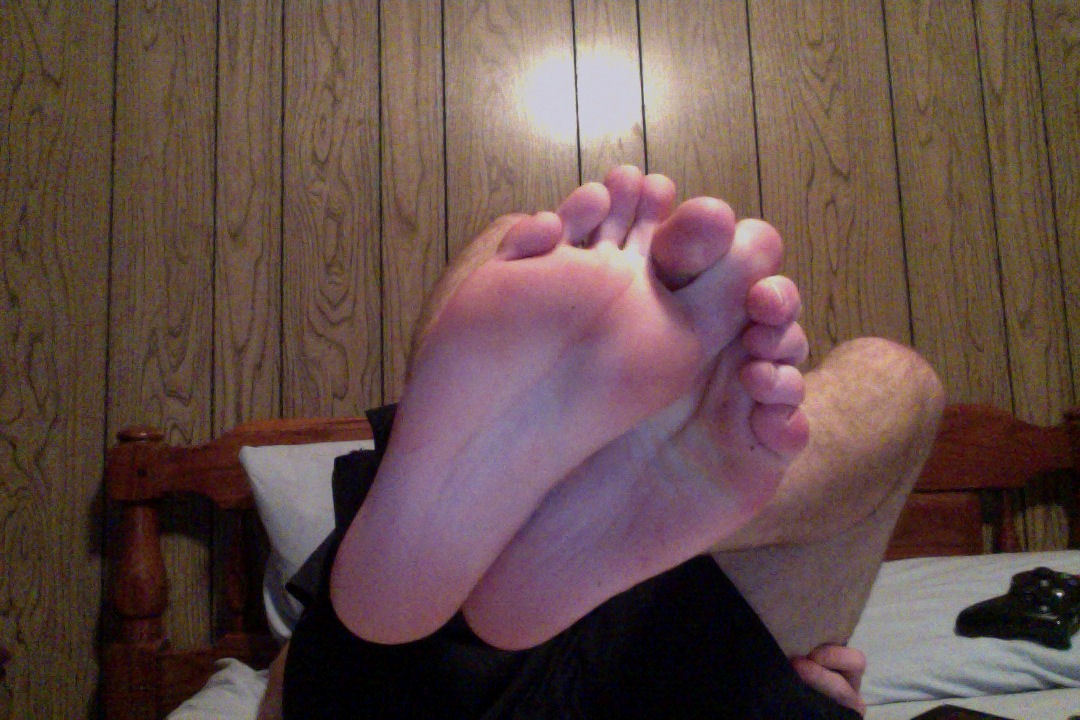 He says, "I love my toes sucked, soles licked, cum between my toes mmm ... Shoot your load here."