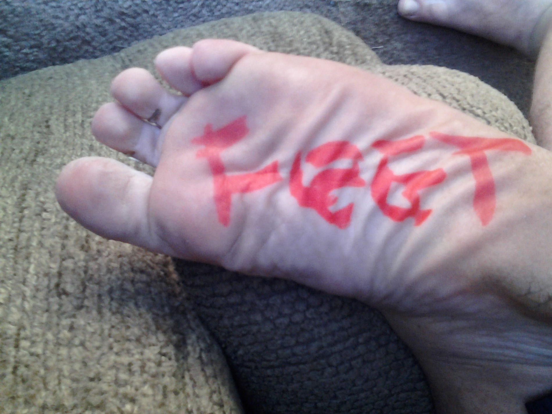 He says, "My feet need a good foot slave."